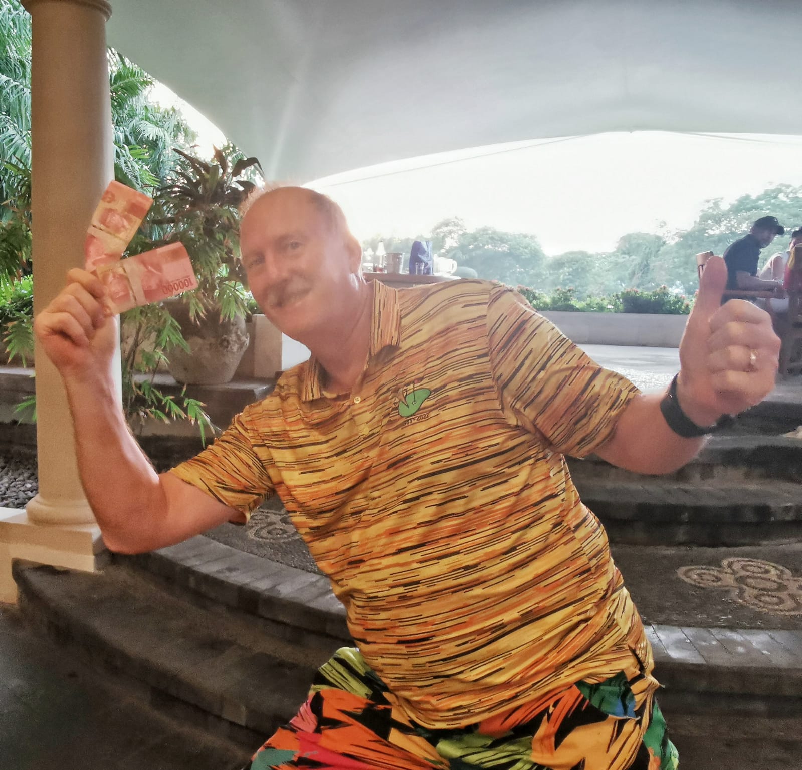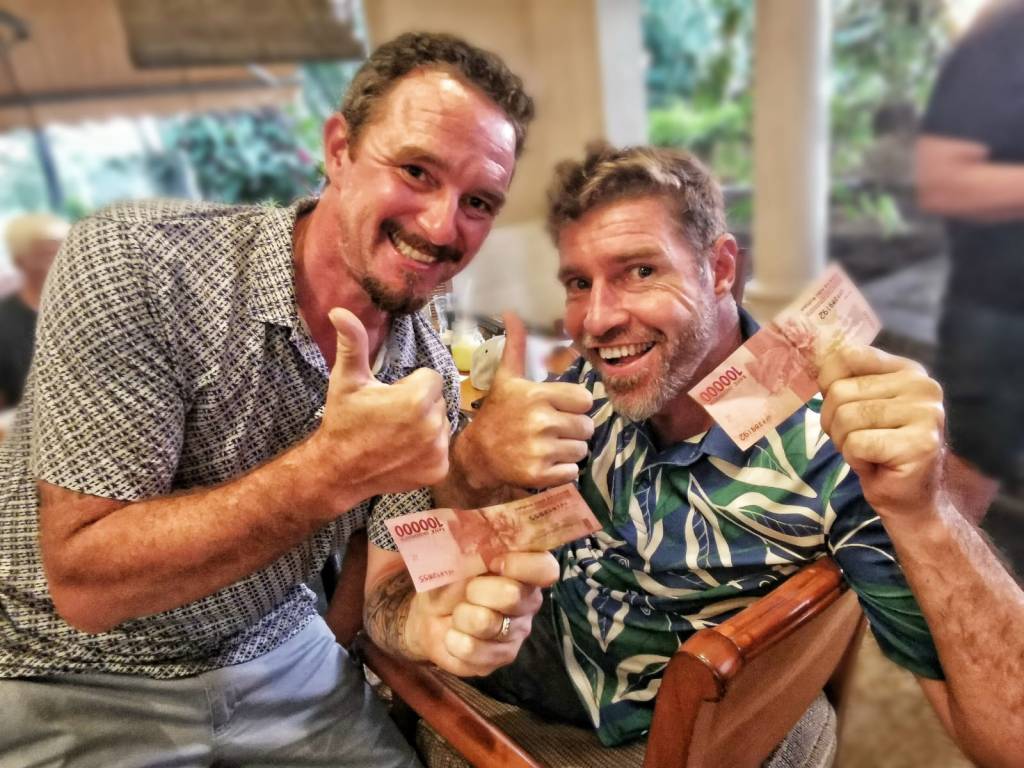 Vincent baiting Roger with Rp100k for nearest the pin win. Margaritas a better form of bait.