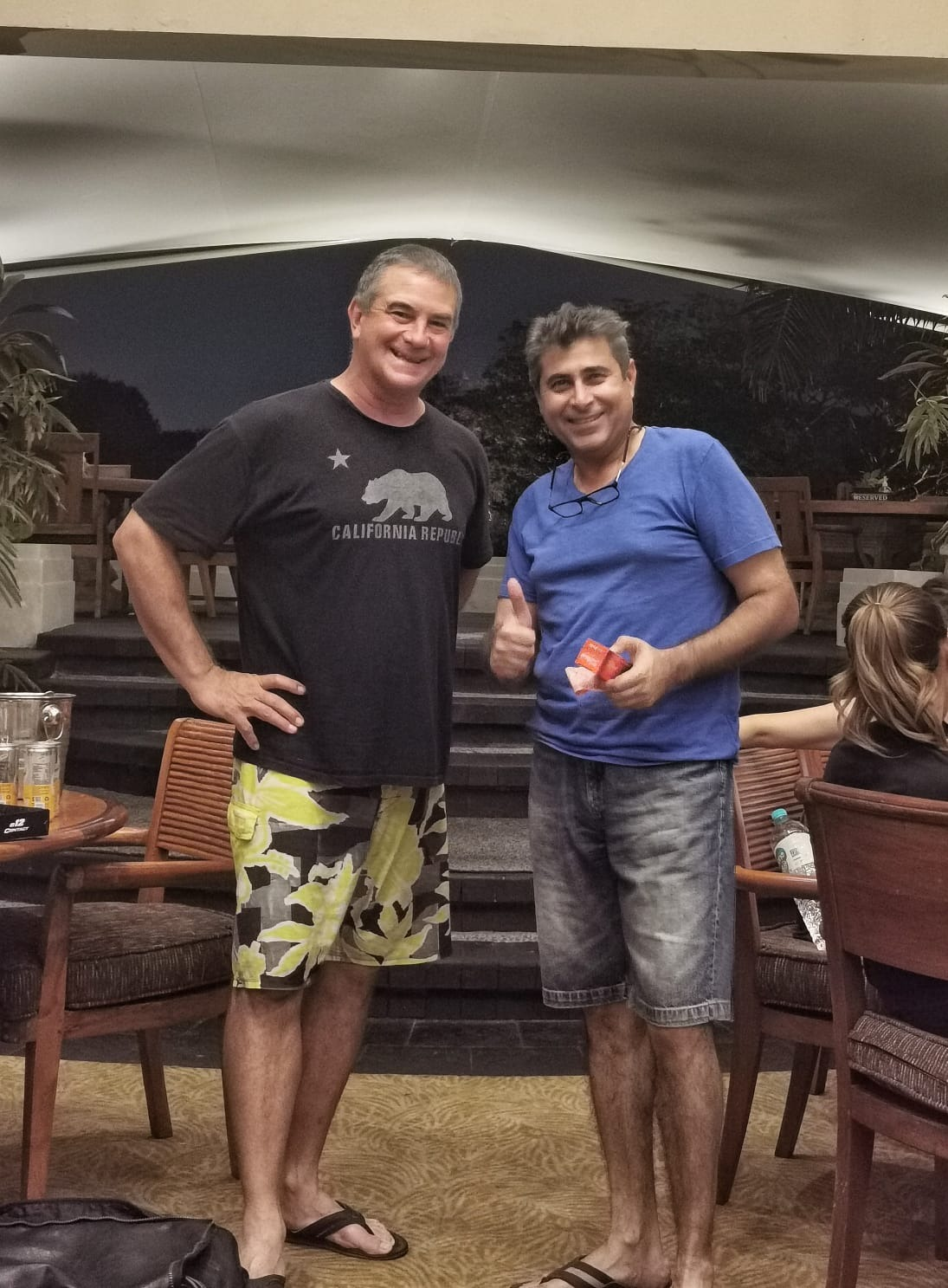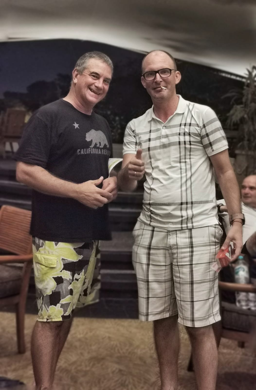 Jari swinging, Tom lighting up.