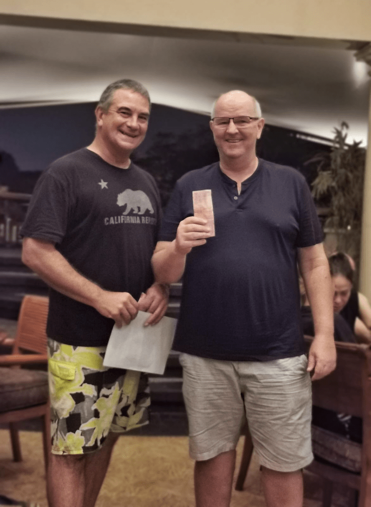 A big mob of TeeSetters headed out to Cengkerang last Sunday to contest the Kojo Monthly Medal. The President meanwhile lazed around the pool at home and had a quiet pleasant Sunday. Which may have led to some pretty good scores being carded. While the Presidents away, good golf is what we’ll play. A big thanks to Bill Lloyd for MCing the apres golf events.