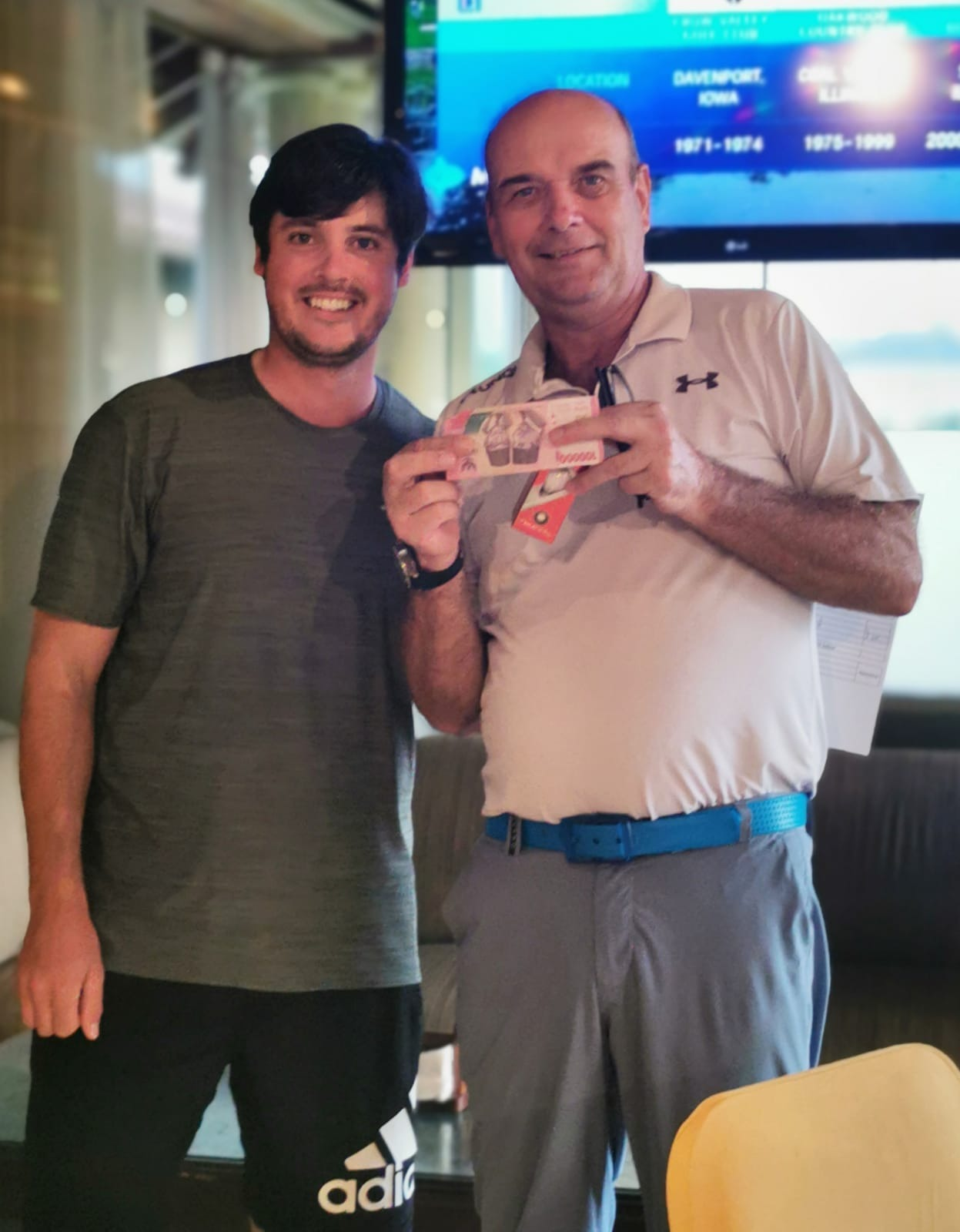 Nicolas presenting Sam with his lobsters for taking low gross 76. Cracking round in Telly Tubby Land.