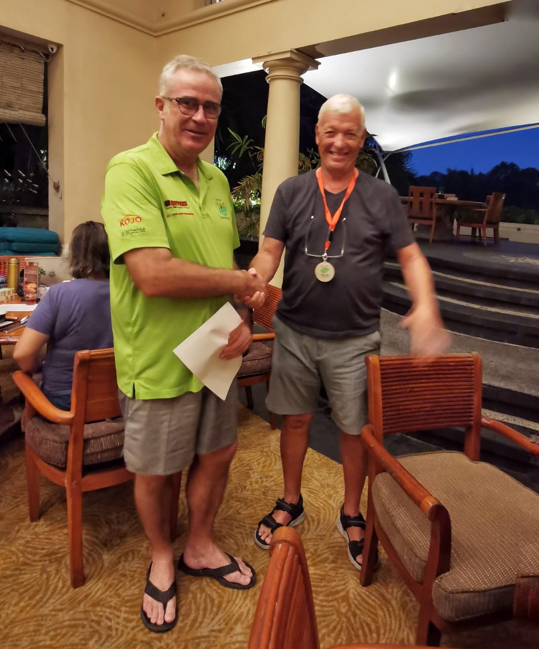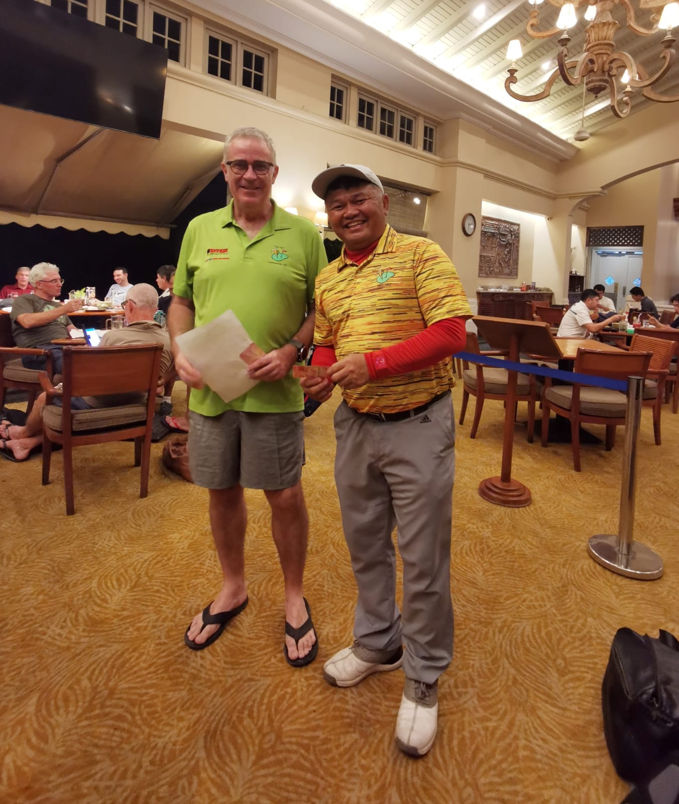 A picture paints a thousand words and this one does of the wonderful Cengkerang Golf Club. The greens were in perfect conditions the fairways hard but well grassed. The trees today seemed in the right position set back far enough to be missed. The par 5 5th played easier than usual and Alessandro proved that with an Eagle which both JP and Diarmuid testify was less than an inch from being an albatross.
