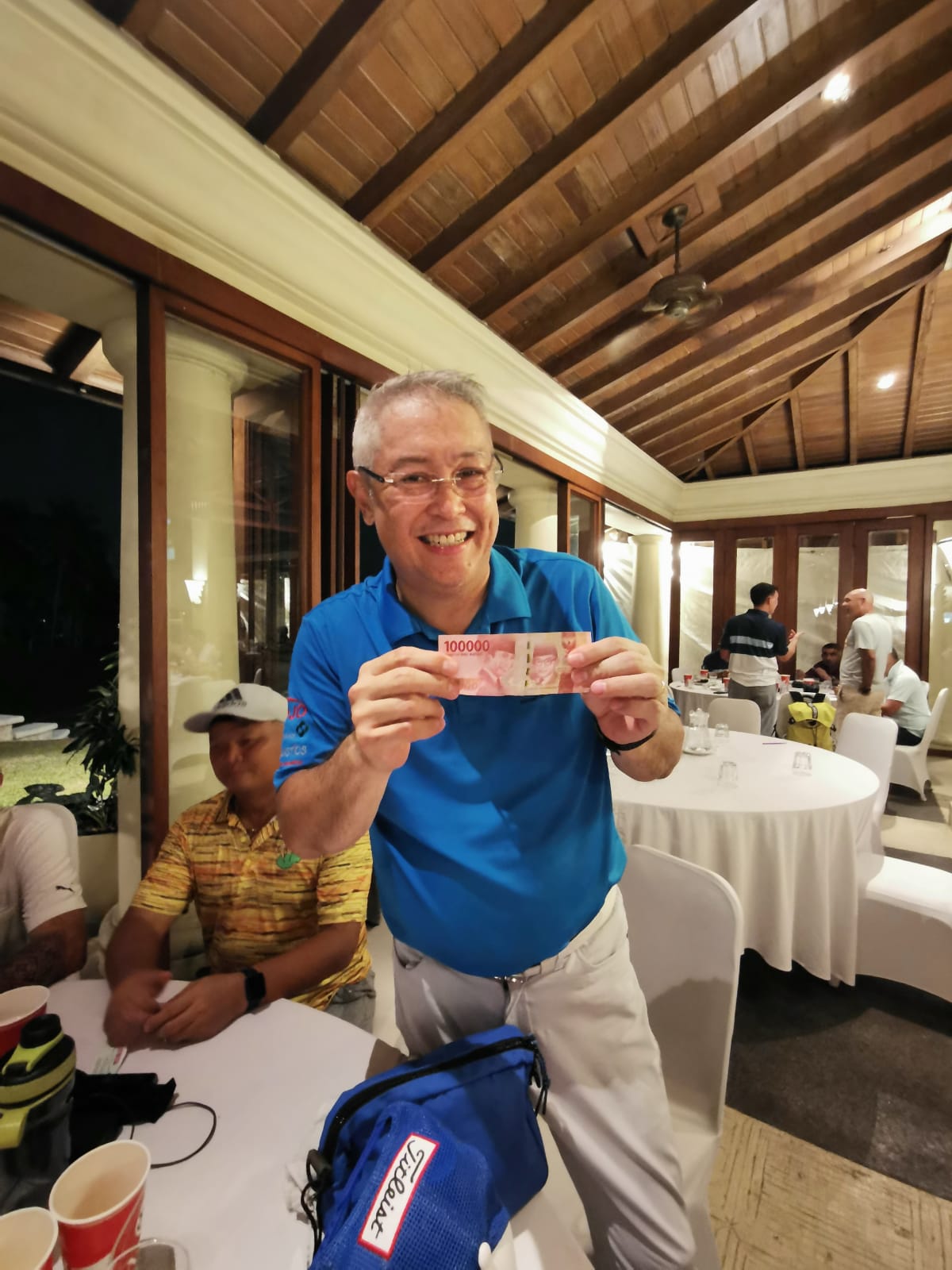 Back to the clubhouse with the promise of free beer and food. The Soto Betawi looked a bit like the creeks around Jakarta at the moment, so veered away from the food trough and head straight to the Anker man and the Anker man was my main man, Agus. Agus was the last man to man the Anker Beer Truck for the Jakarta Hash House Harriers another sporting group that was poorly lead once upon a time by this President. Free beer and golf leads to some epic recounting of stories on the golf course, none of which will be recounted here as free beer also leads to short term memory loss and a confidence amongst the opposite sex that can lead to dangerous reactions and more black eyes. A quick mention that Anker under the guise of the other delightful brew of theirs, San Miguel, is a main sponsor for this years TeeSet Championship, along with Hot Hed, Asian Tigers Relocations and J S Luwansa.