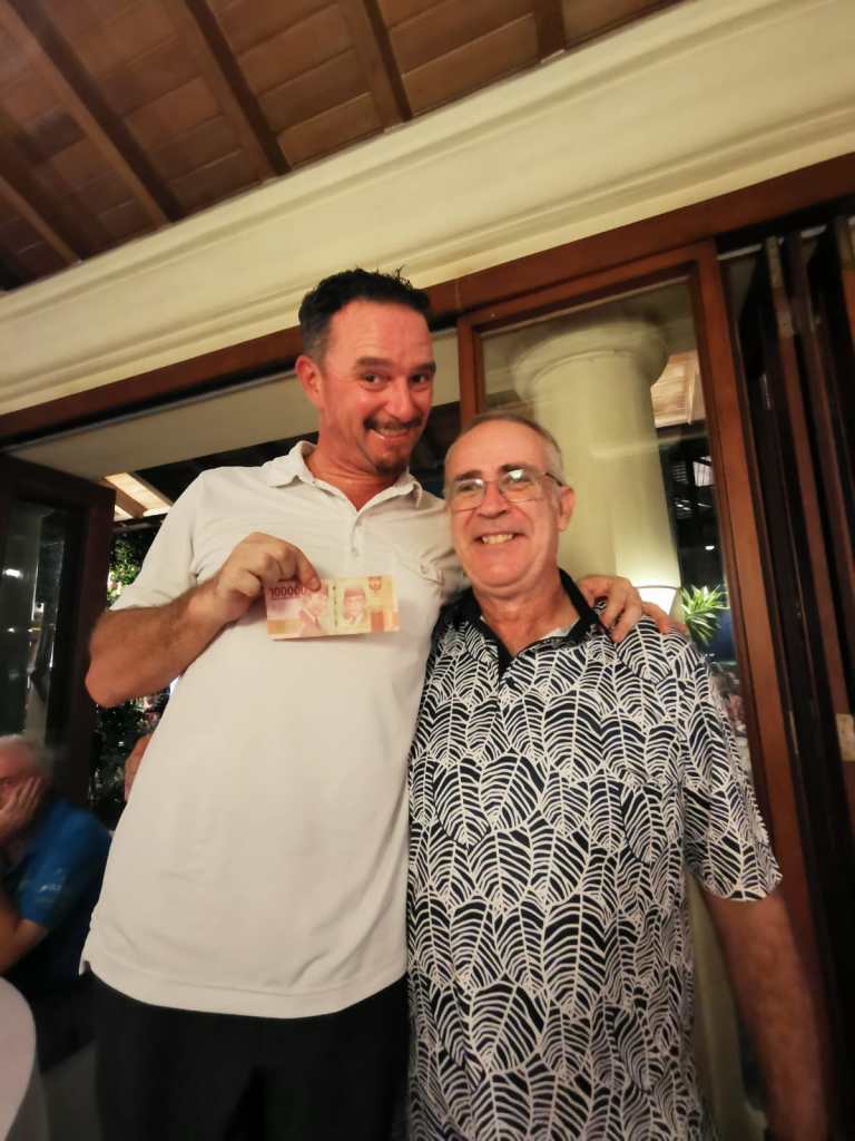 The day itself was a now typical Jakarta afternoon, smoggy. Pockets of the stuff were all over the course and the hoons on the other side of the course were adding to the pollution by doing burnouts. Surely the most despicable spoilt children on the planet. The temperature seemed hot but Madonna’s peaks were missing nipples. A proud moment for the club President on the long drive hole with his name going on the marker with the enviable distance of 175 metres or was that yards? Mr Westen wandered by later and erased the president from the history books.