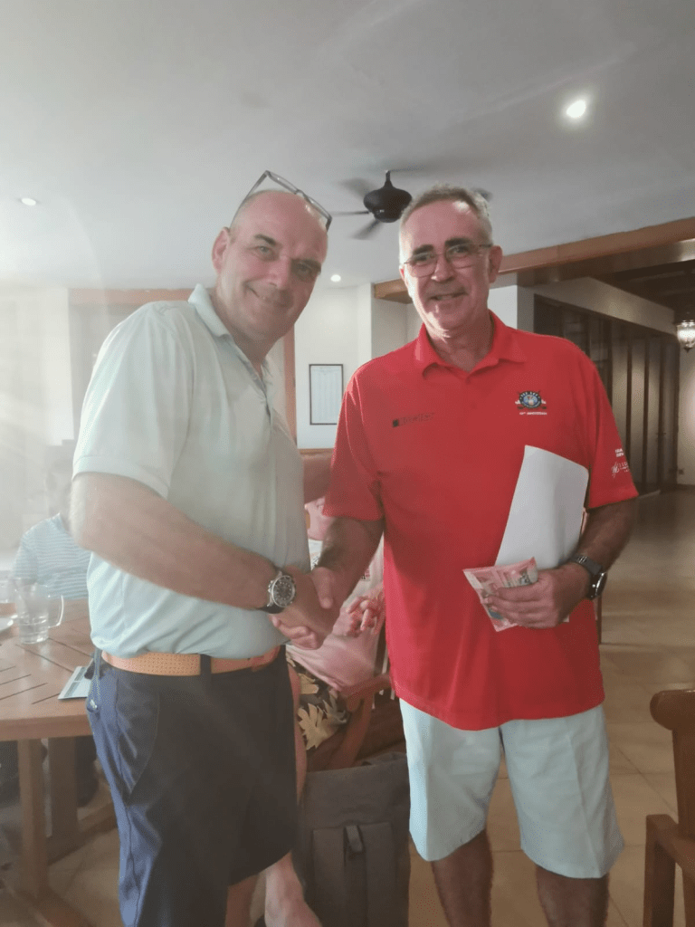 Back to the clubhouse feeling jubilant and blasting the hecklers as they 3 putt the last. There’s Bilal I wave we catch. How’d you go? So so but I managed an eagle on the first. TeeSet Bookend GAding Raya with an Eagle at the 1st and another on the 18th.To the winners