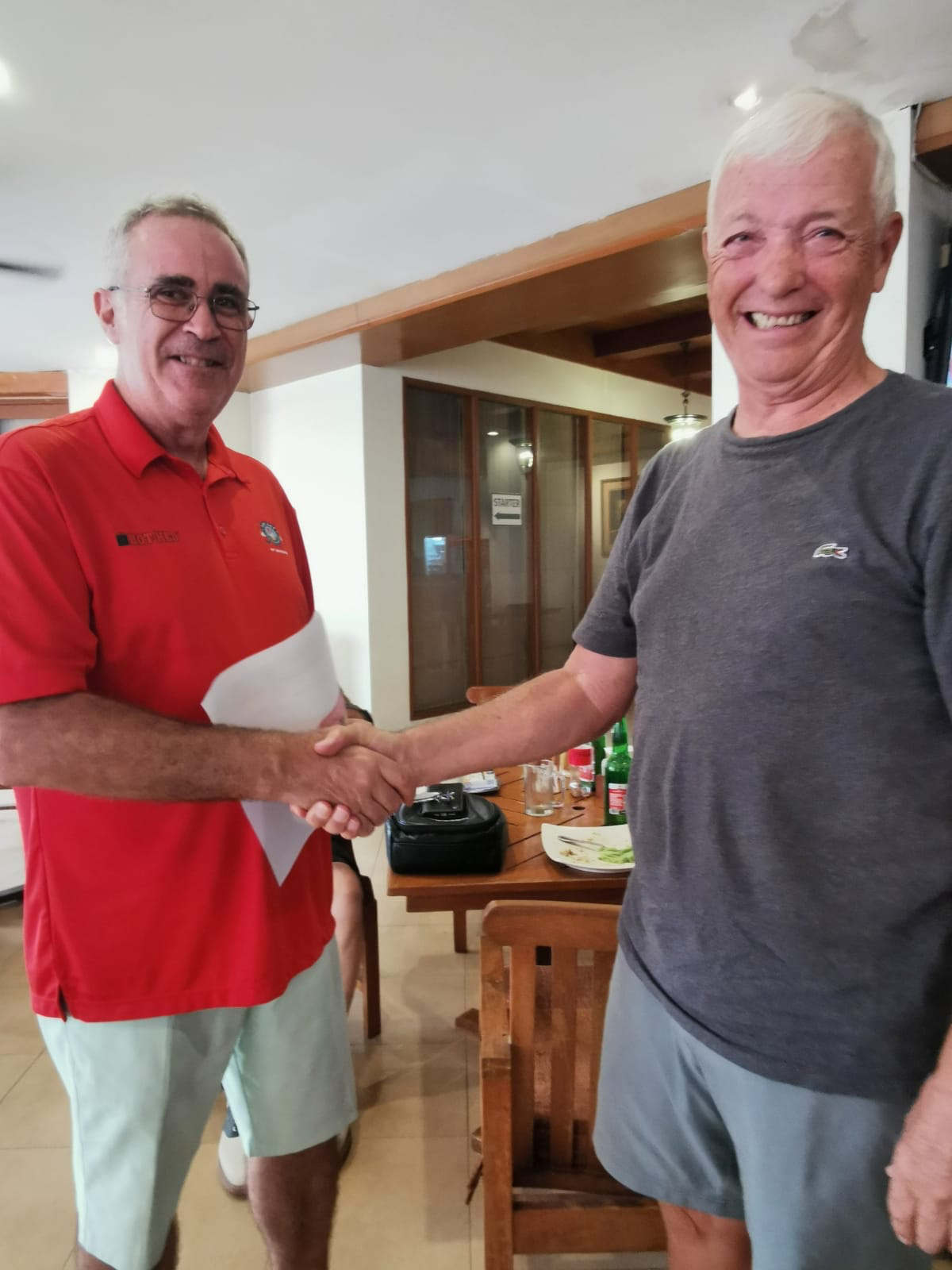 Best Stableford to Tom Terrific with a marvelous 45 points, off the blues. The prize money disappeared quicker than a bolt of lightening.