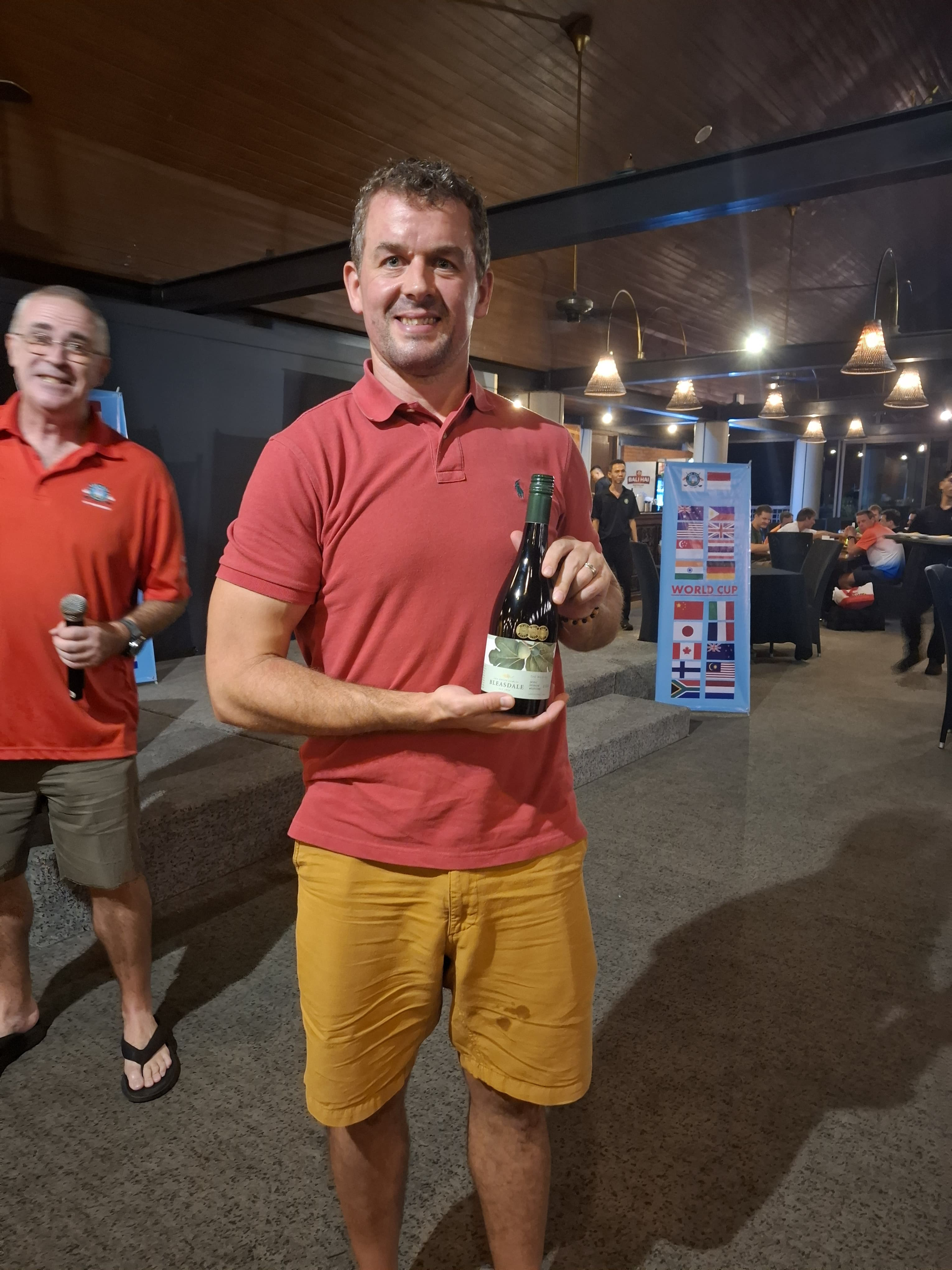 Andrew will be taking this to his next AA reunion. A Nice Aussie wine for nearest the pin. 60cm which is about 2 foot in the old imperial measurements, when the Brits still had an empire, all they have now is a antiquated system of weights and measurements. I digress, well done Andrew.