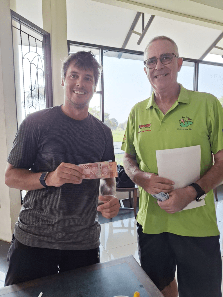 Sam was in reasonable form with a gross 73. This should put him in reasonable shape for next week’s Jakarta Interleague. Well done Sam. That shot you played on the 5th (on the official front 9 )was an all time ripper.