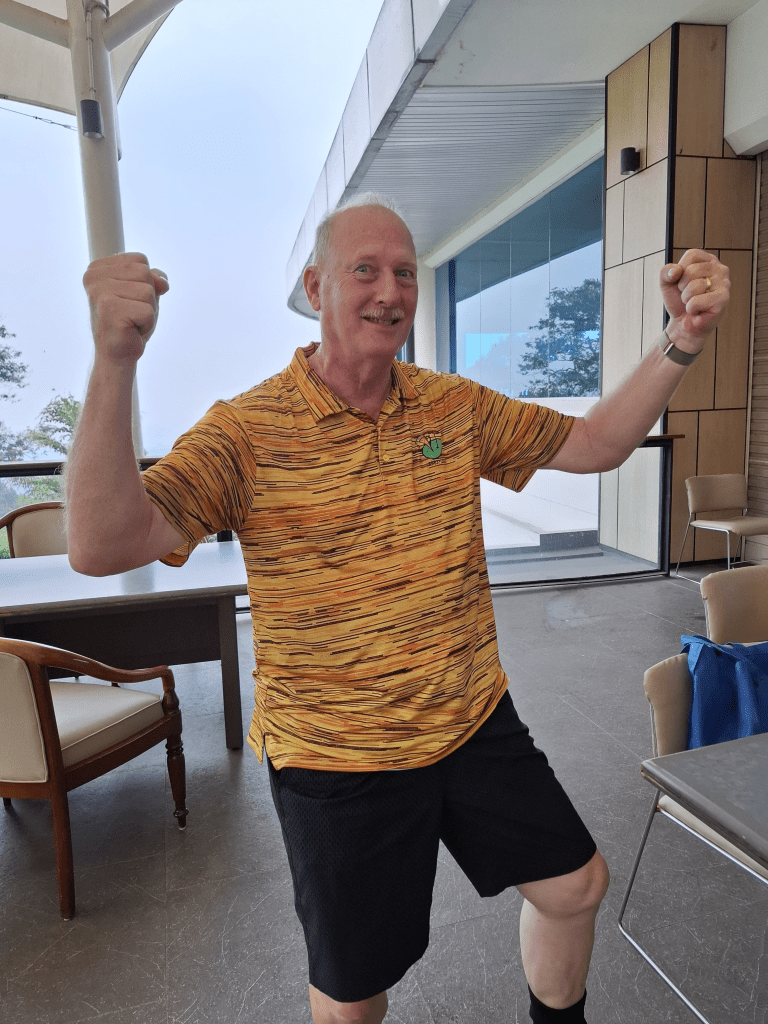 Meanwhile Jens, Tom, Shinta and Rosita took the advice on board and zigzagged across the mountainside avoiding roadblocks but basically completing the round in the same time if they had followed us. We finally caught this “slow” moving group on the 3rd last hole. It wasn’t a 3 ball, it wasn’t a 4 ball it was a 5 ball. They looked important and they obviously were important as why else would they be allowed to play as 5 on a Sunday. We believe there may have been some gambling involved but the police were not contacted. Round done and dusted in just over 4 hours a lovely day on the mountainside.