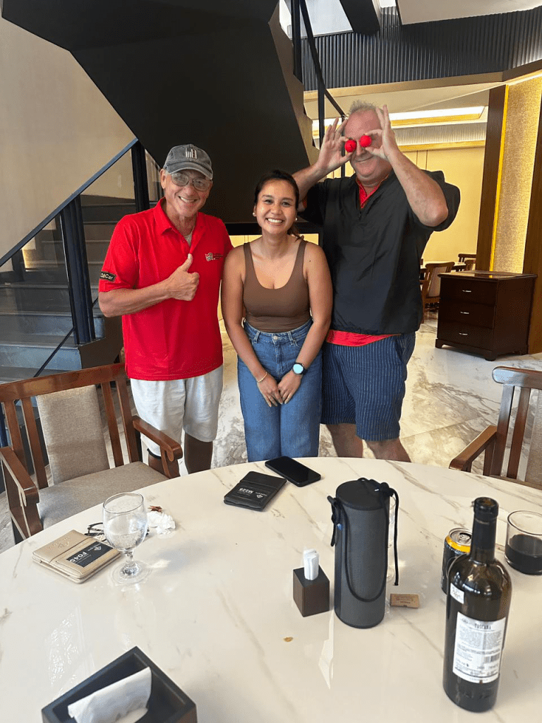 Back to the clubhouse to see who else made it. Bags, The Singing Ex-President were well into their cups in the company of Tri. The Finns who had started early were into a Bintang inspired warm down. Warming down after sport is a necessity and TeeSet’s chosen warm down fluid is any product from the Brewery of San Miguel when available, normally found in Bill Lloyd’s medicine box. Slowly the survivors came in and it was encouraging to see more than half the starters had hung tough to complete the day.