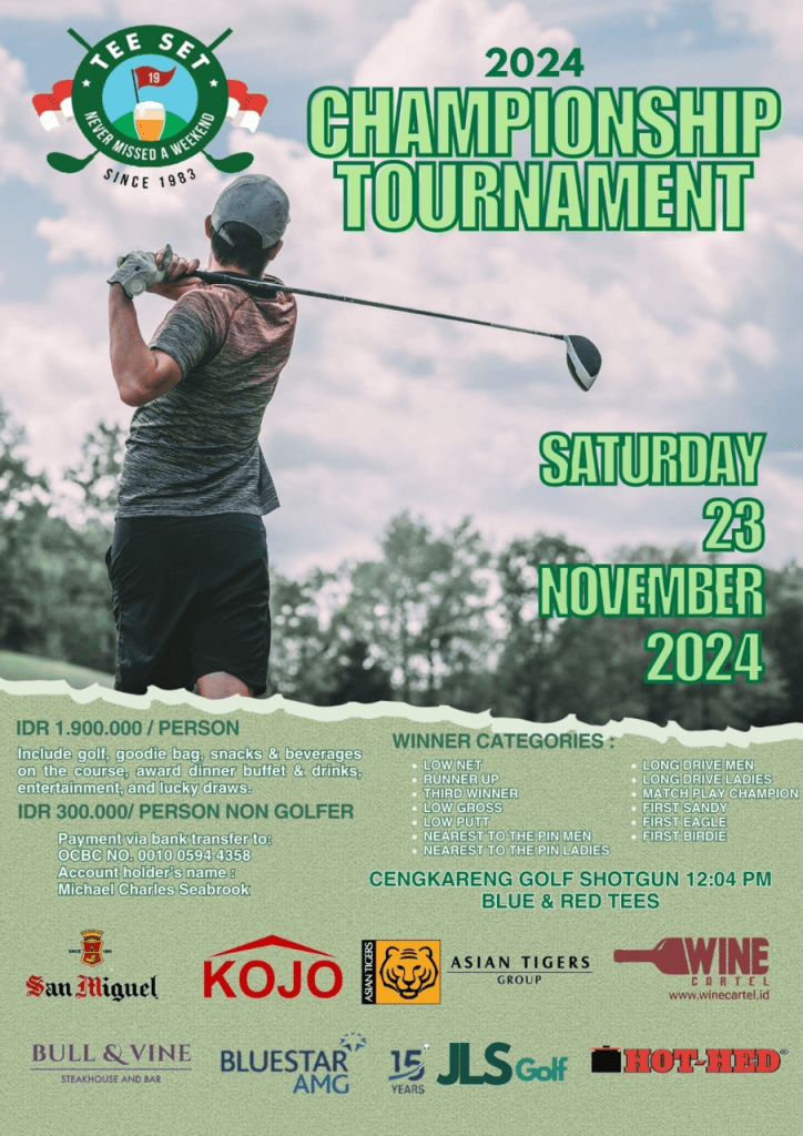 Hi TeeSetters we need to start finalising numbers as we have to make bookings for the course, kitchen and booze. So far 60+ players but just 20% have paid. Please pay to the account info on the flyer ASAP.
