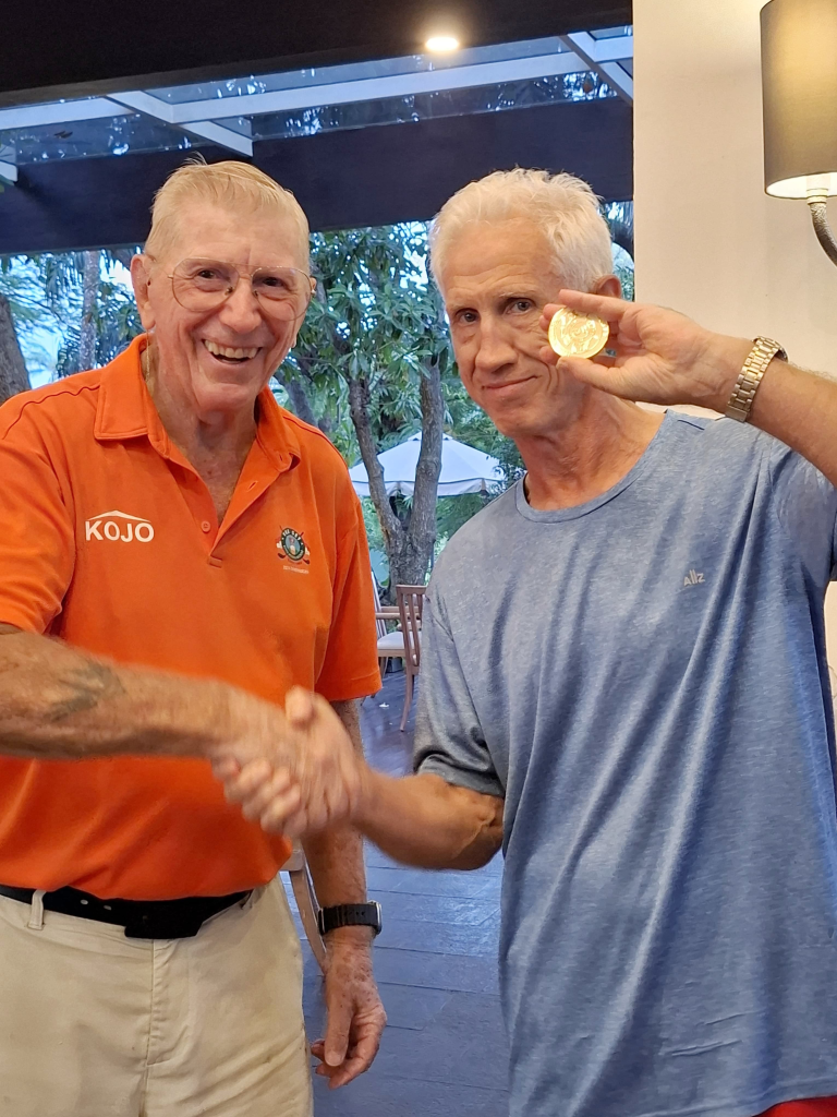 Religious duties, home duties and eye surgeries may have contributed to a smaller than usual turnout for this month’s medal did not mean a drop in the quality of the field assembled. Half of the field played to their handicaps or better. Our lady golfers have dropped in number, has this something to do with the increasing costs at the golf courses? Cengkareng has managed to keep their price under 1 million and with their 2 for 1 happy hour prices is probably the best value for the Jakarta weekend golfer. Keep this in mind for when the 27th rolls around.