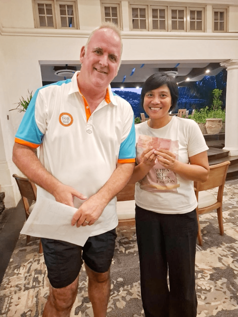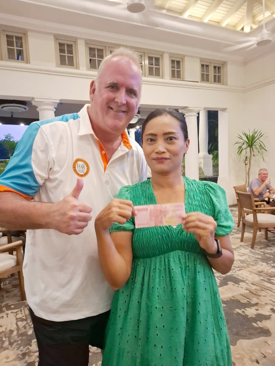 Trisna wins the nearest the pin ladies with 155cm. Well done. The caddy witness on the day did not bother measuring men’s. May have been Patrick.