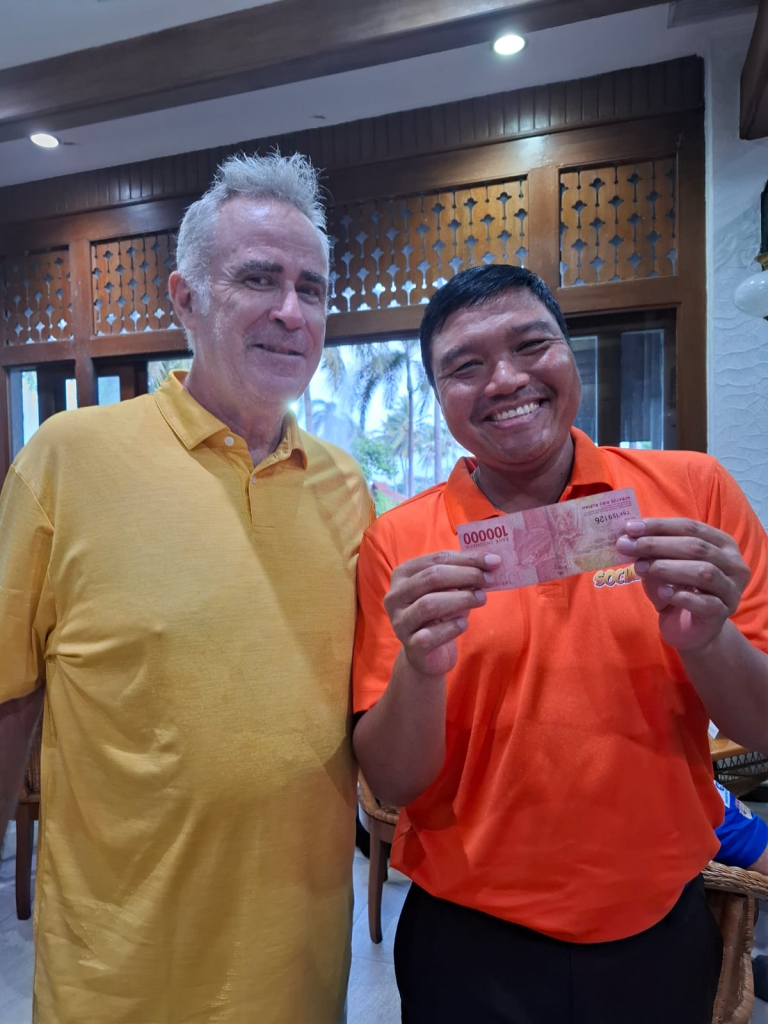 Back at the club house it was into the beers before showering as the change rooms were packed with the mid afternoon finishers who stayed for some bakso or a frothy or 2. After ding 1 bottle the waitress deemed I had had enough and presented me with a bill. I sent her back to get more. Thanks Heykki, Jari and Steve for the beers, my shout next time. They want you out of that place ASAP.