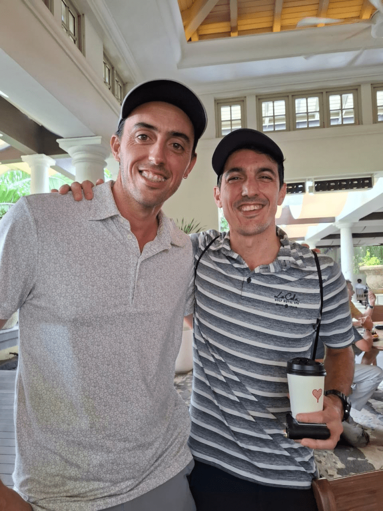 Bagus gets the first birdie on the 3rd hole. His better half Trisna took Jaakko down in the matchplay. So a good day all round.