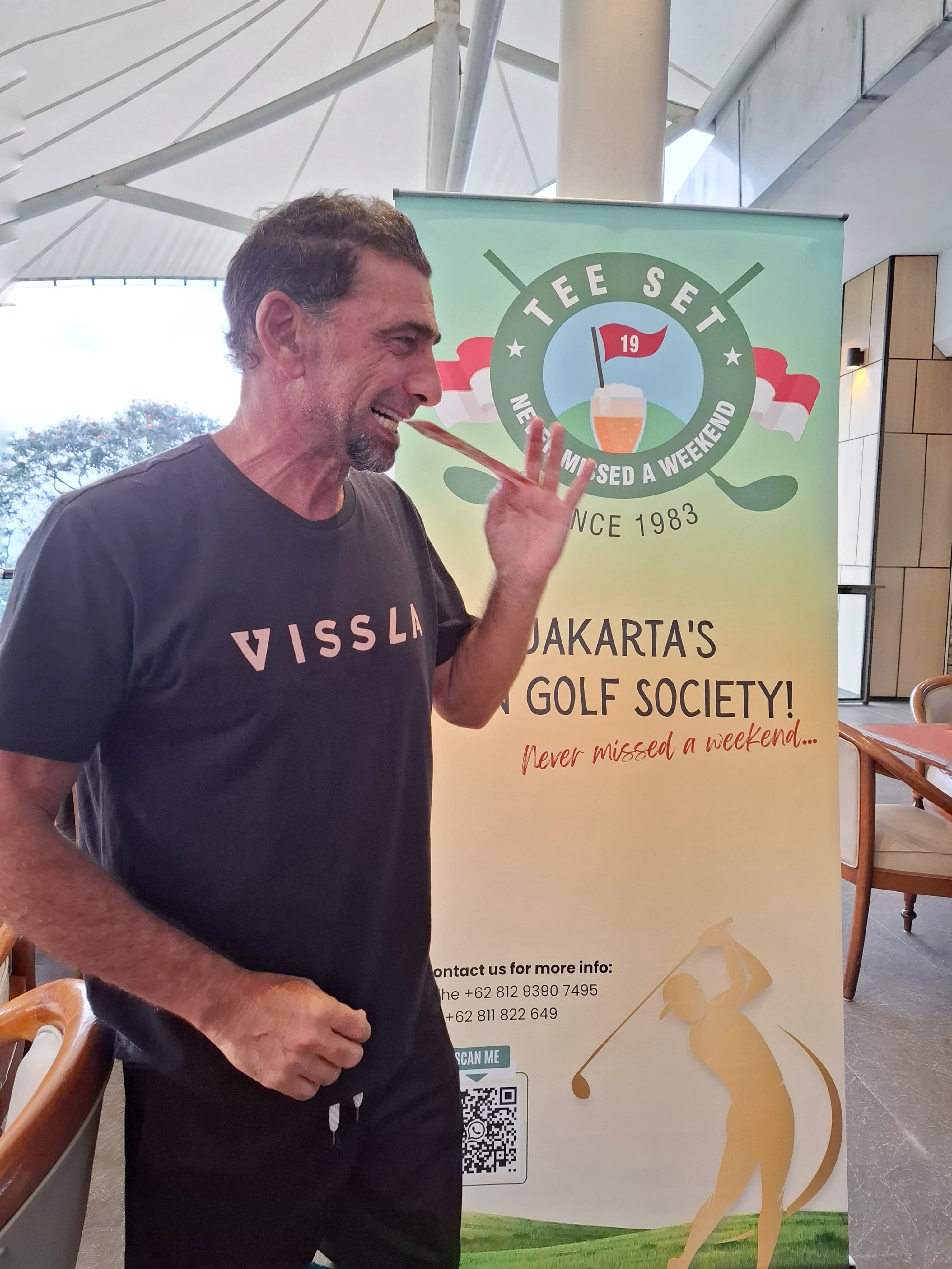 With an earlier than usual start a couple of golfers barely made it in time and a couple were a bit late. Always read the tee times in the MyGolf2U app to avoid confusion. Next time you will be mentioned in a highlighted TeeSet scribe report. We Teed off on the crack of 11.30 and the game was on. The 3 ball in front soon disappeared as did the four ball behind us. This made for blissful golfing conditions as shots were unhurried and missing balls were looked for. Jens was hosting Jess’s buddy from the States John in his cart and both myself and Jess had separate carts due to gravitational forces that are present at Gunung Geulis.