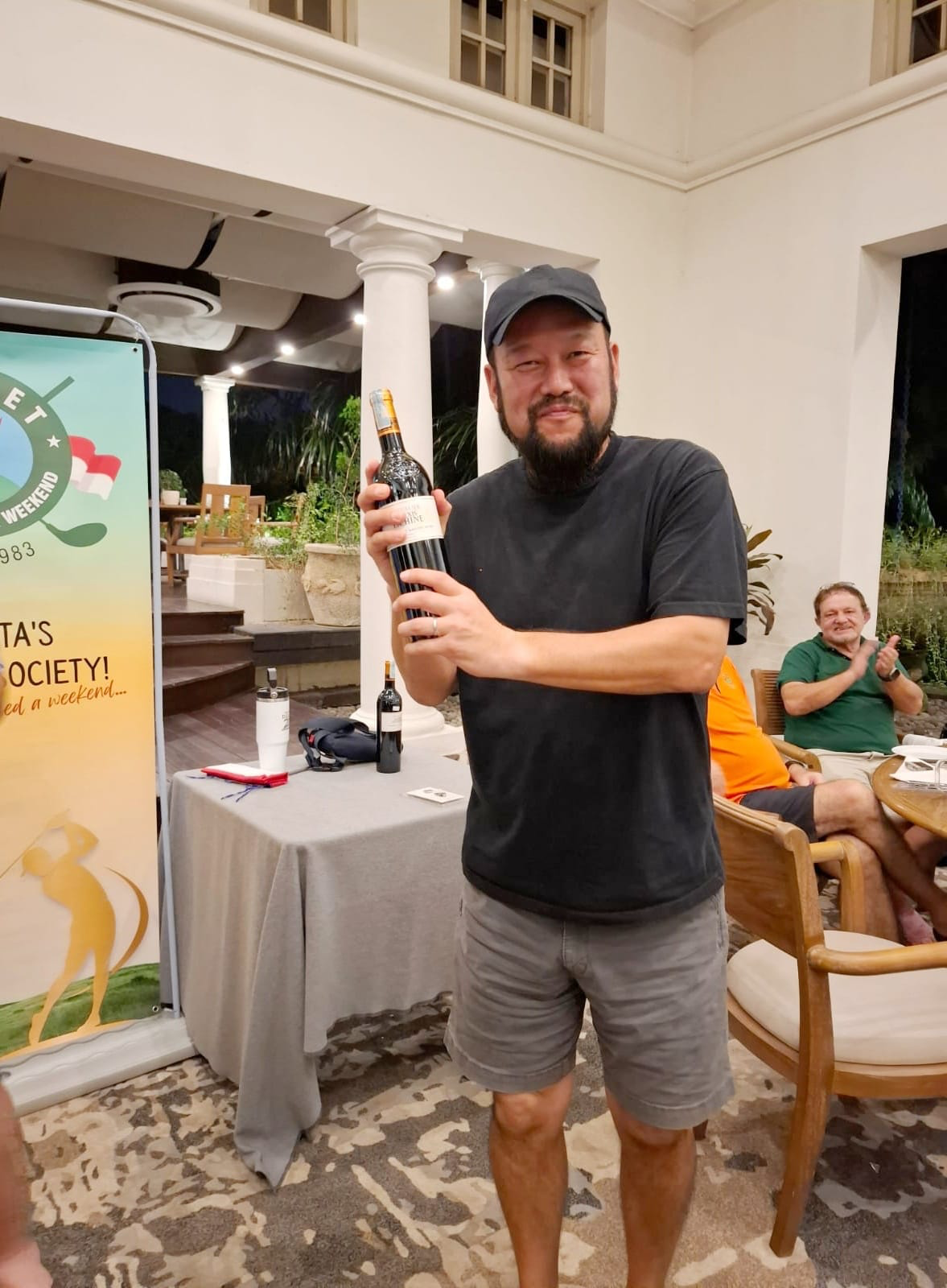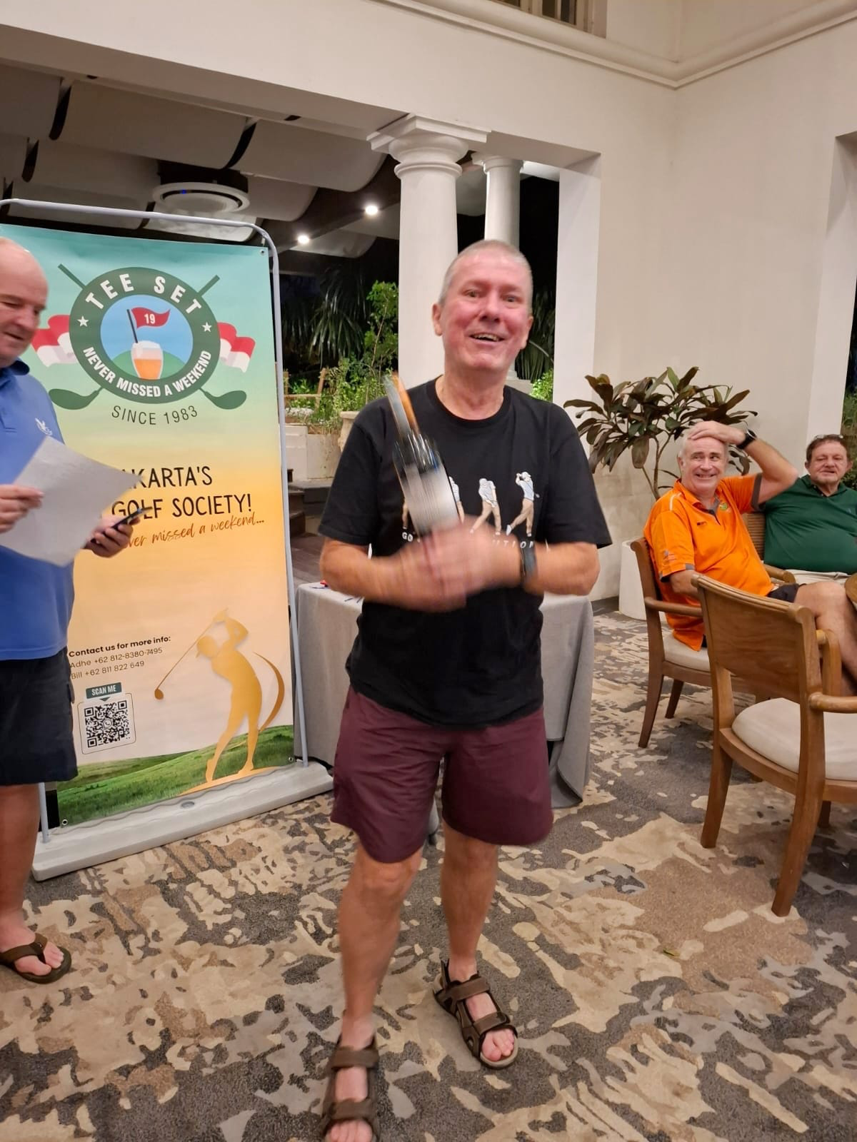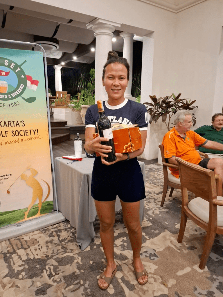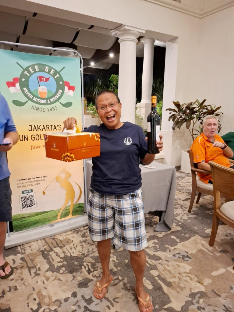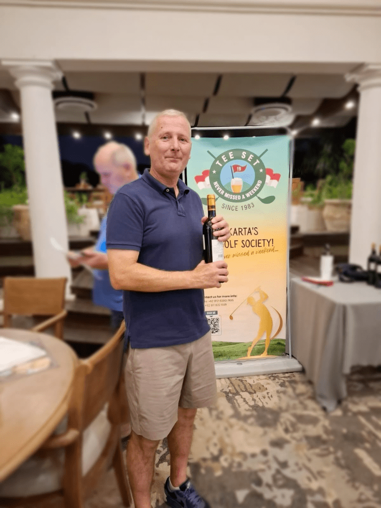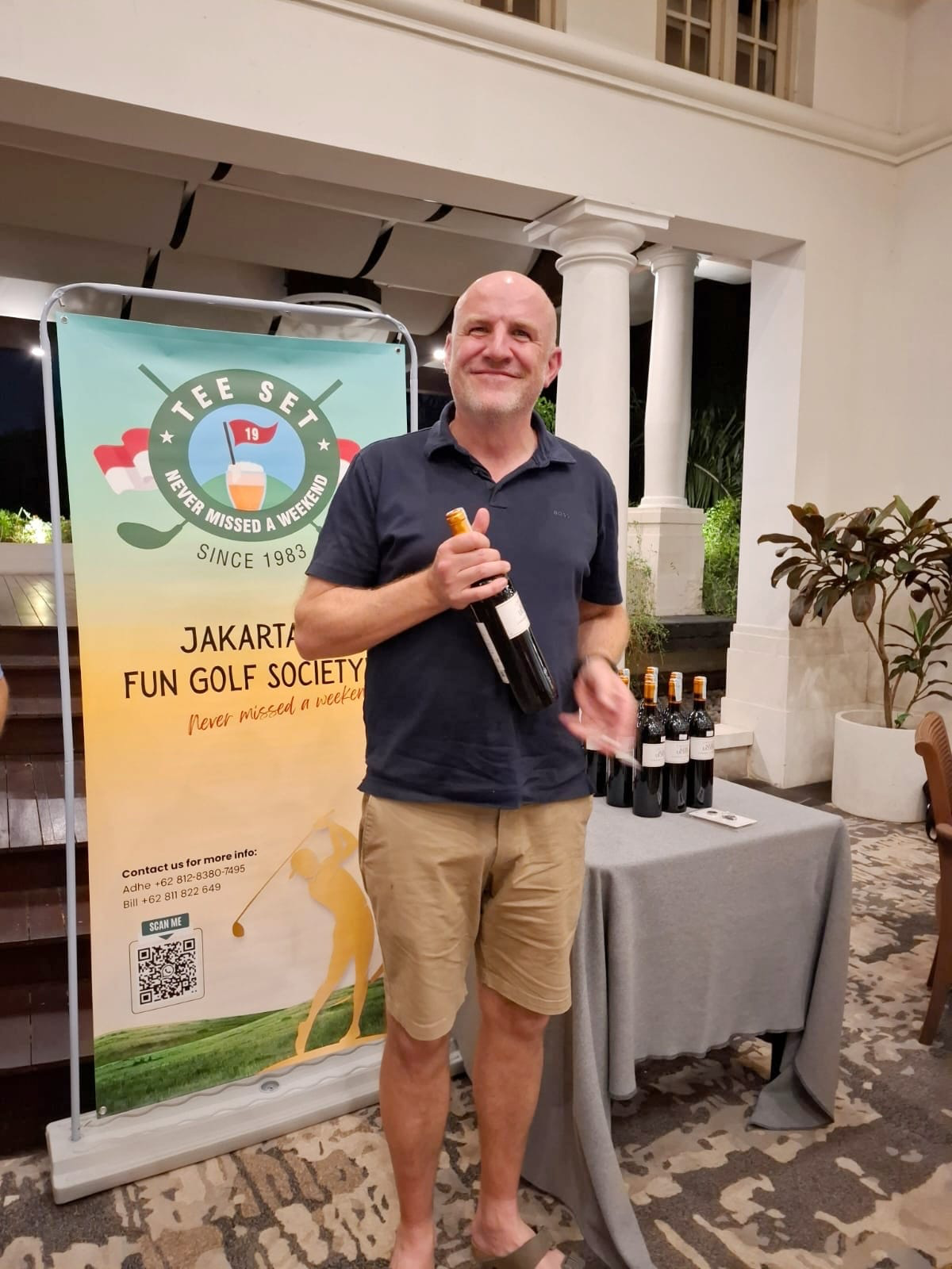 Well that was a lot of winners or whatever they all got a bottle of wine which led to a long evening at Cengkareng as the TeeSetters shared their booty and golf stories were re-counted long into the night with French disco-punk serenading. The wobbly boots were firmly on come Monday morning.
