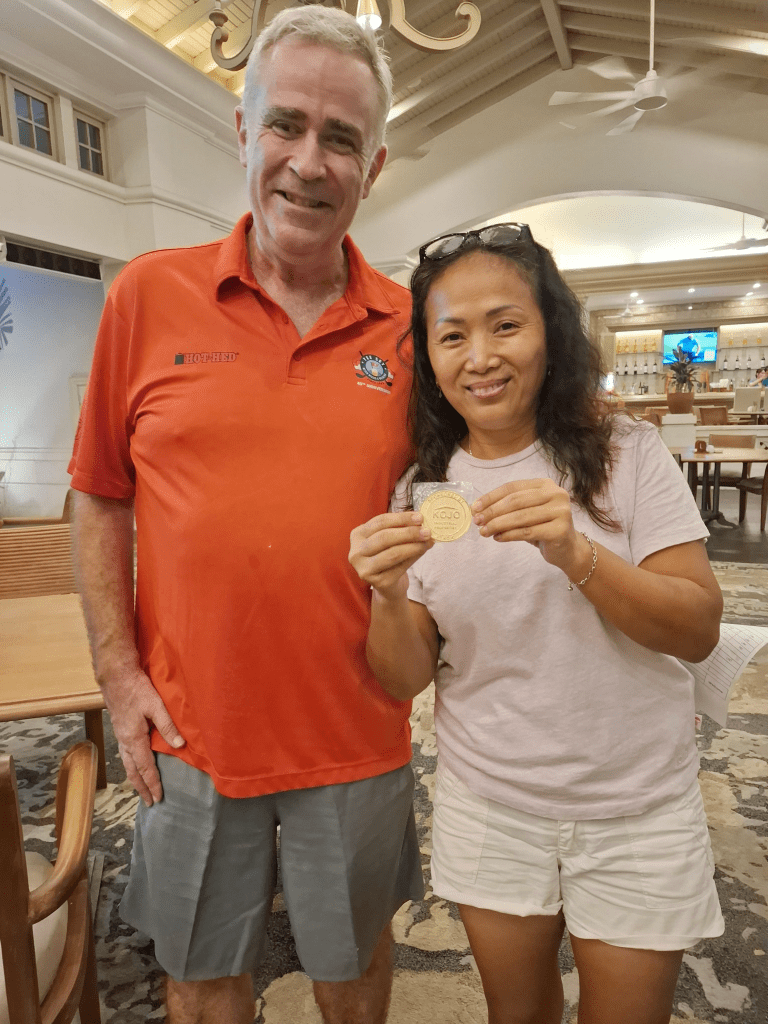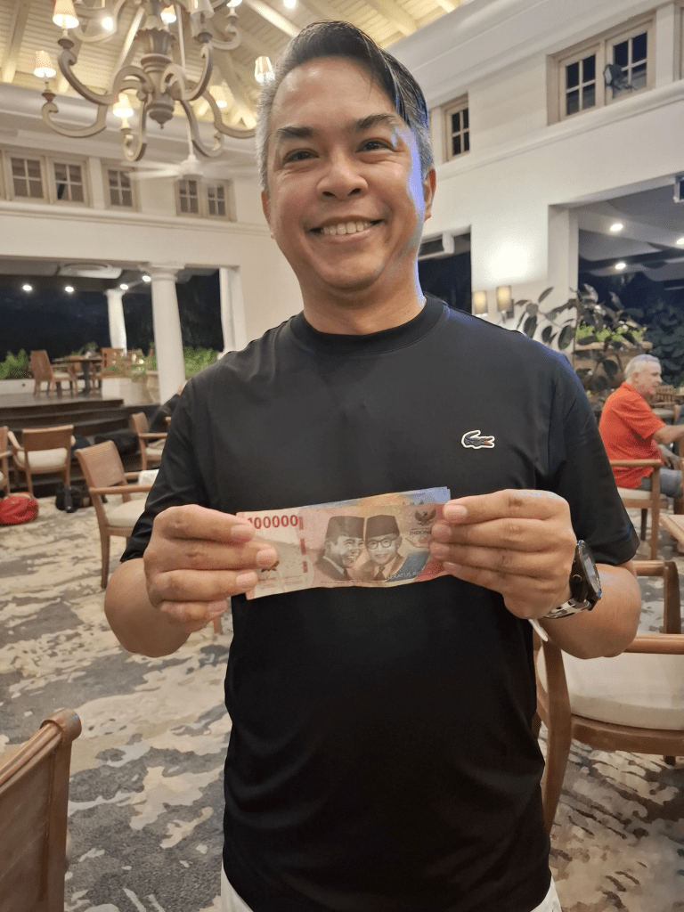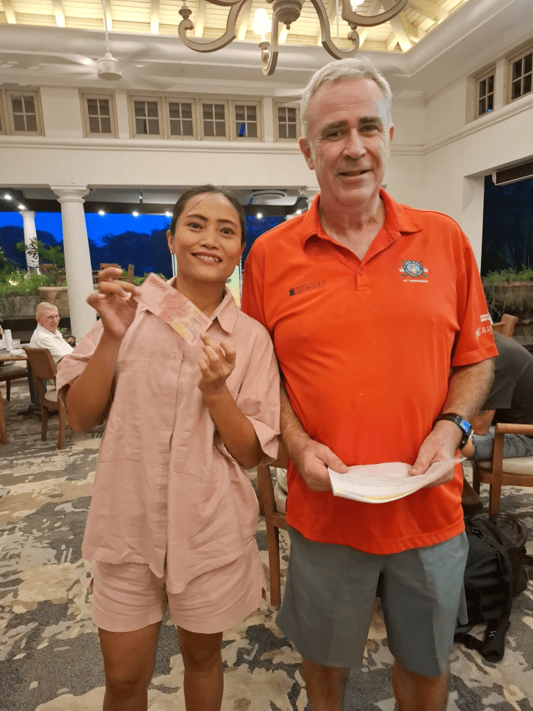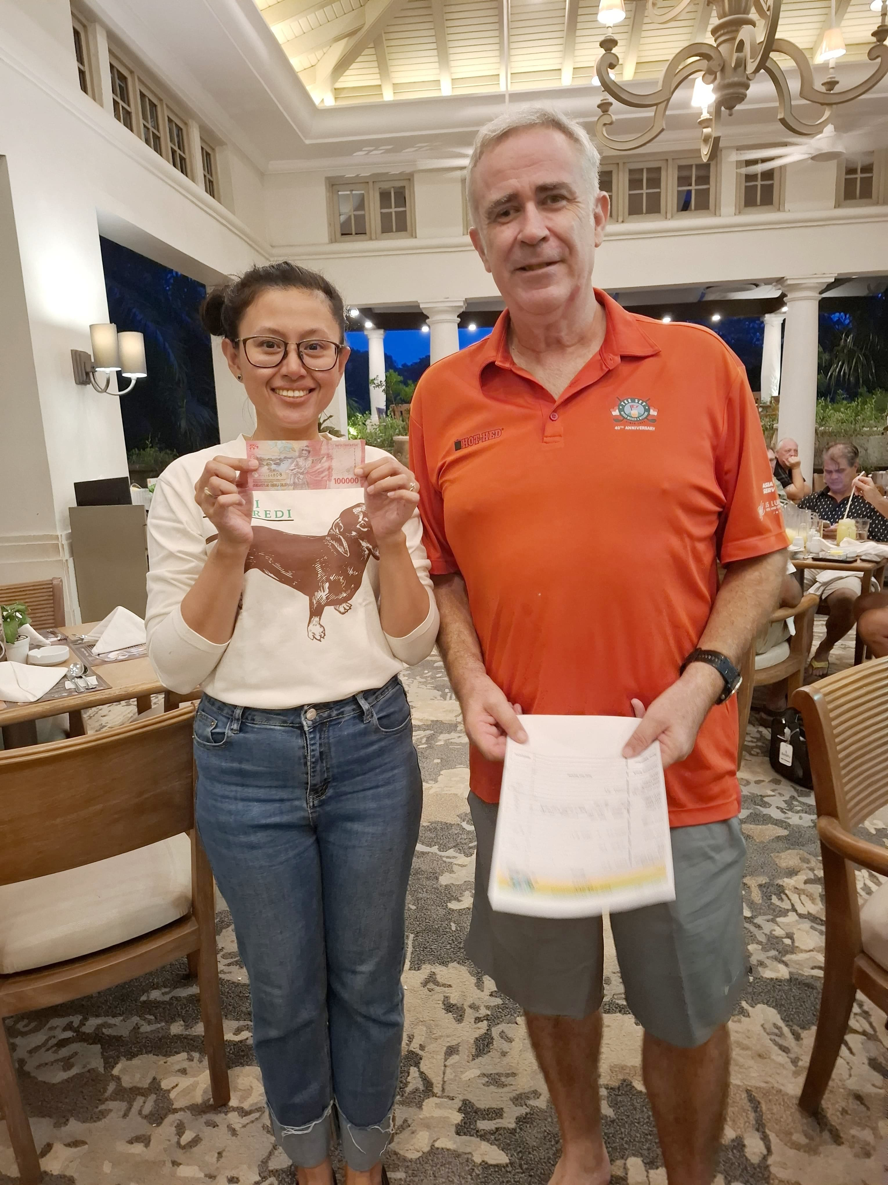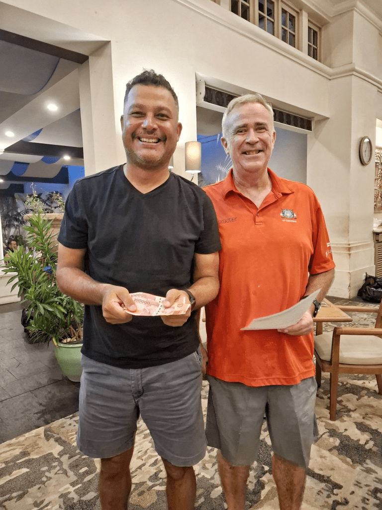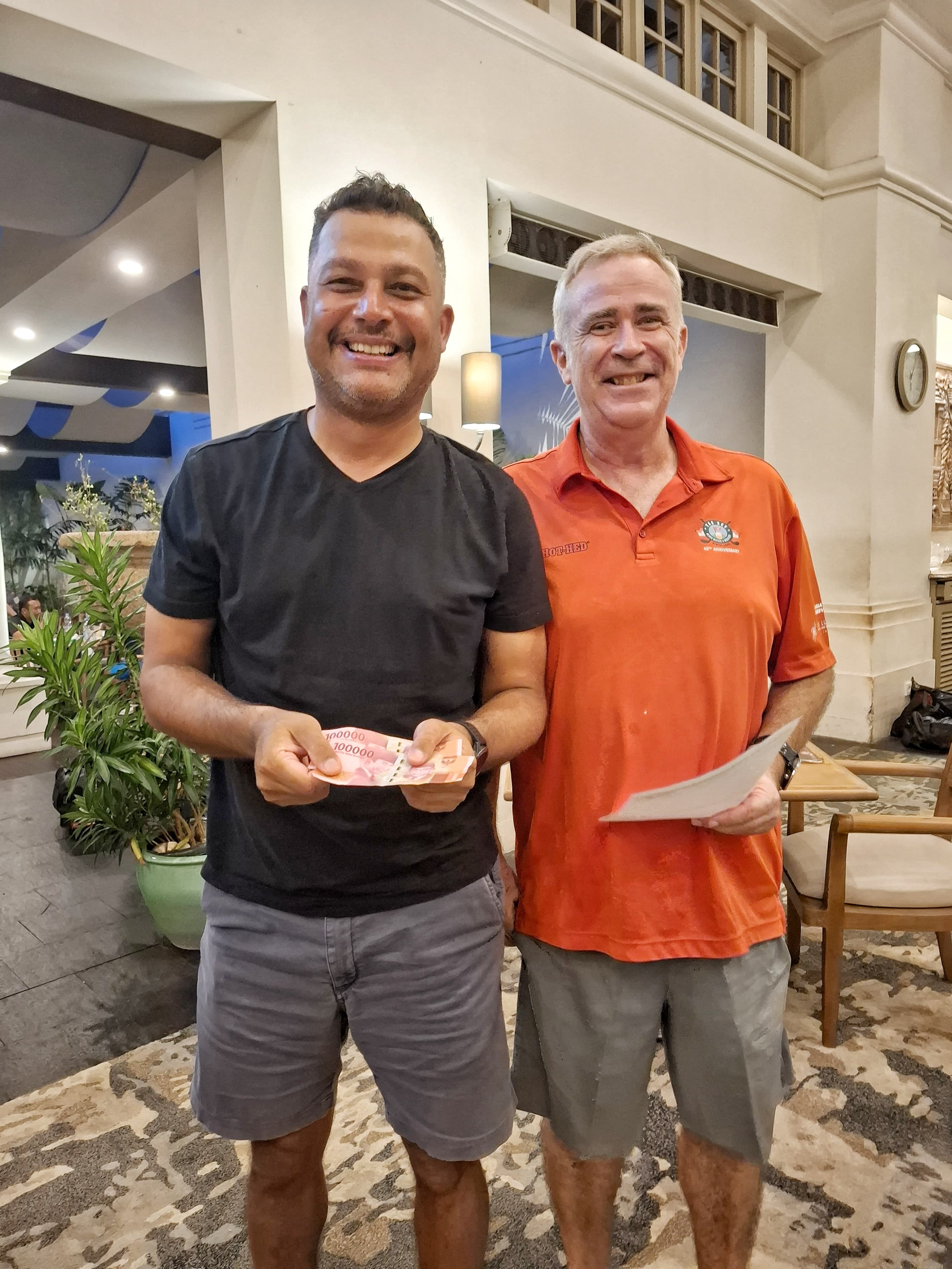 An ecstatic looking Steve with his Rp100k for his nearest the pin efforts of 6.80m