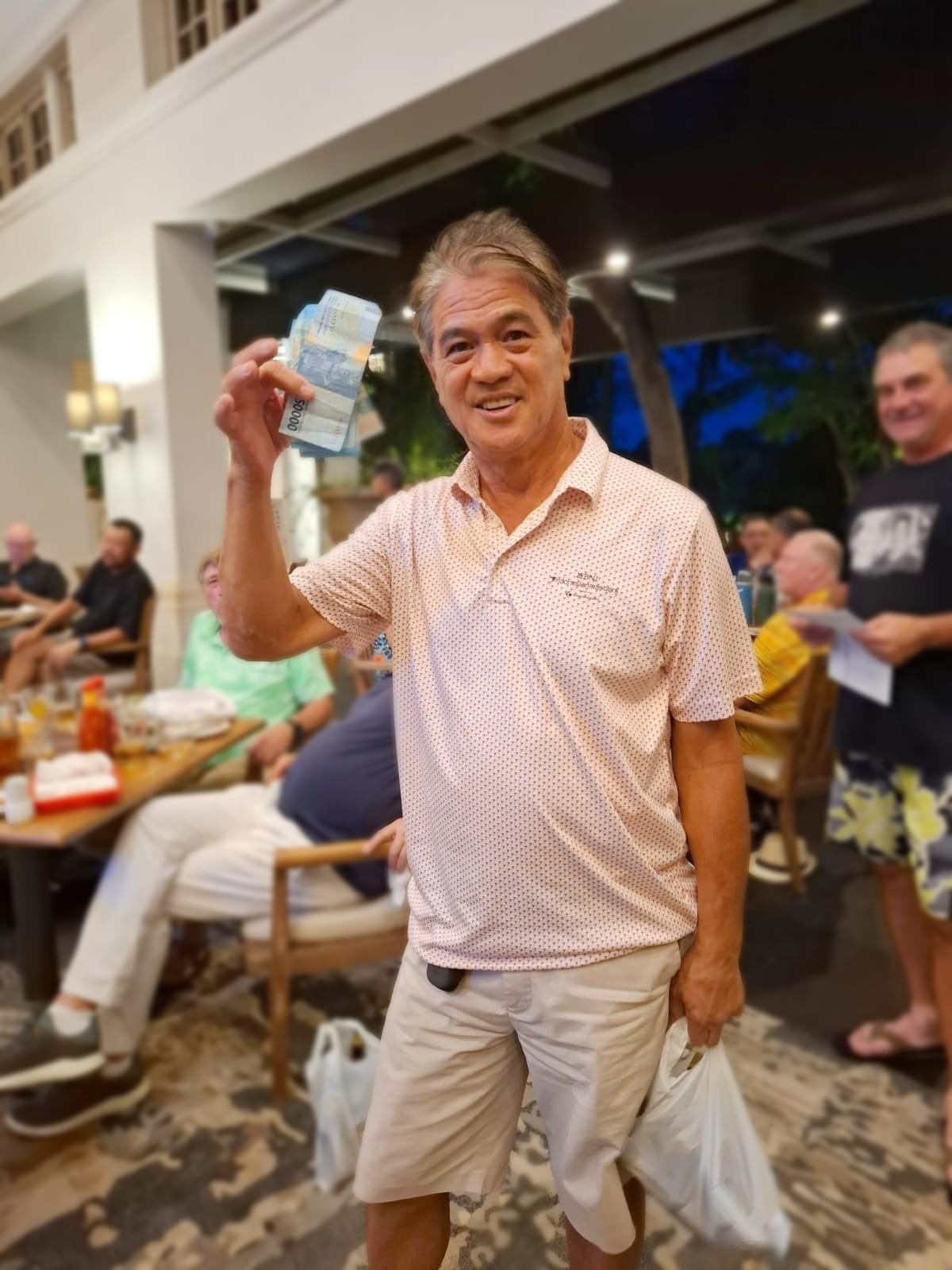 Richard happy with a gross 77 some money and especially a bag of beer.