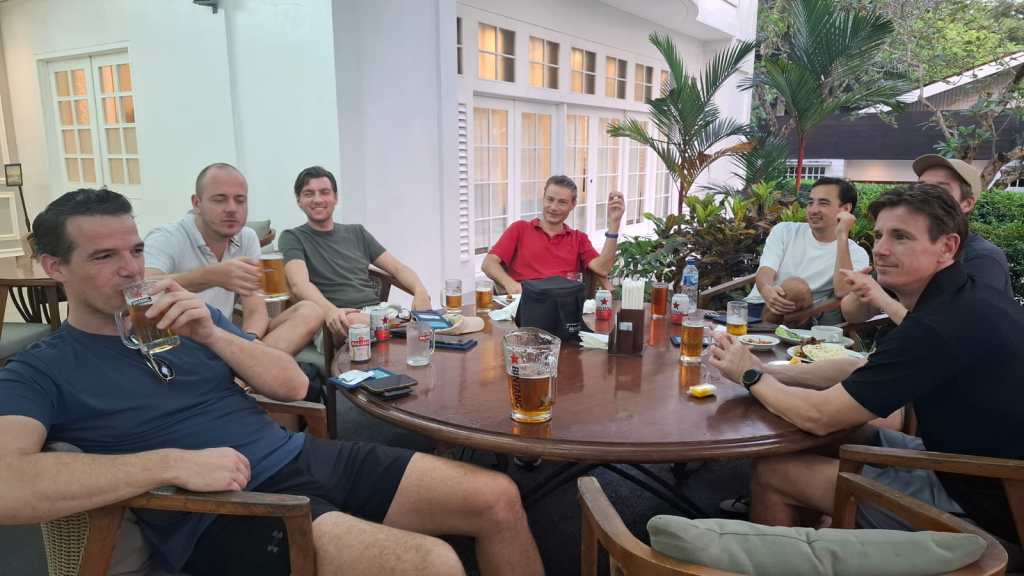 Some new faces to TeeSet in the photo below. Good to see them getting stuck into some Apres Golf beers.