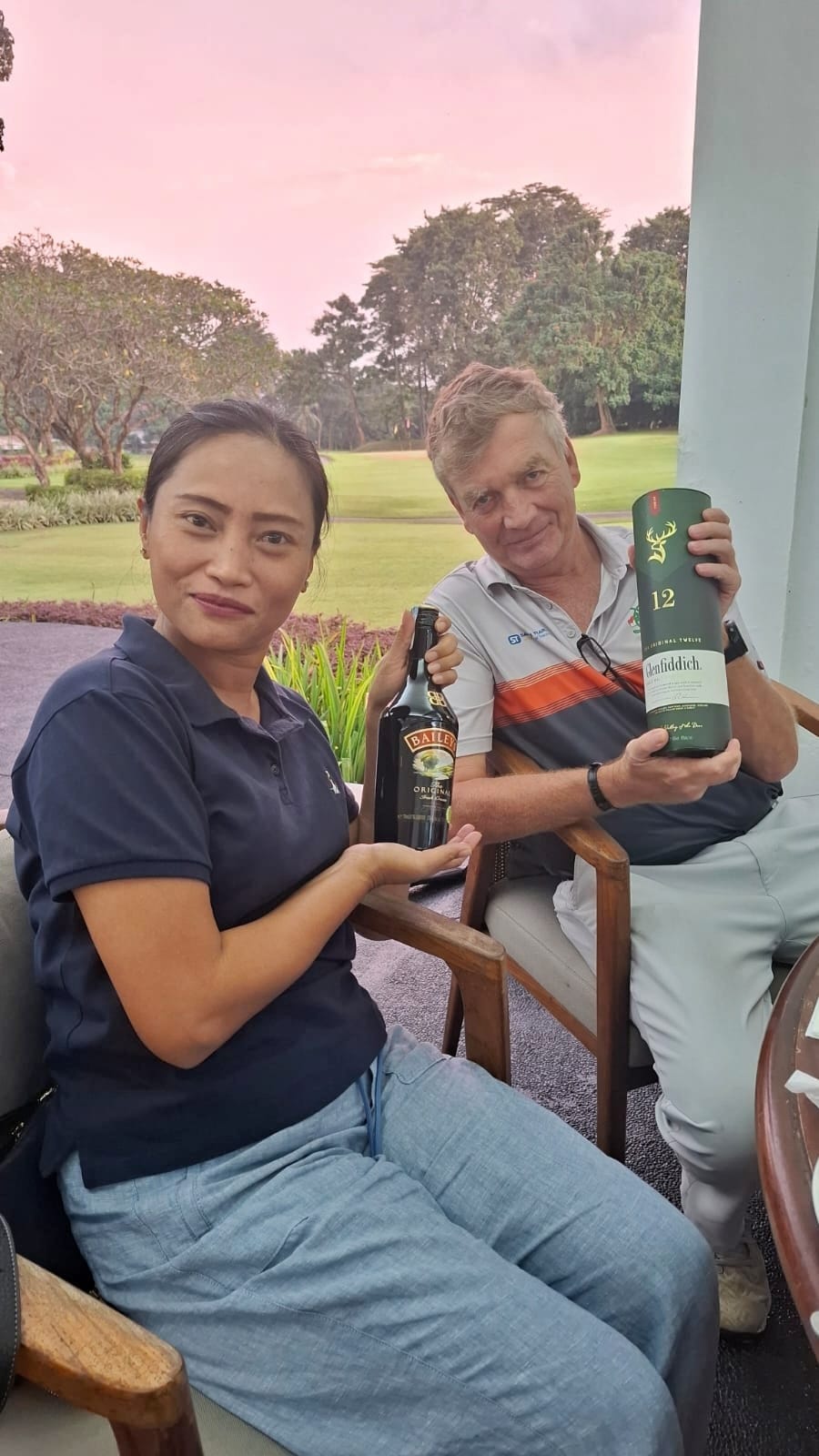 Tanjil was offered by the club which many happily took part in but I preferred to chat with my old mate Roberto. The last surviving member of the ENI group of golfers who started playing 4 years back. Roberto ovr the years dropped his handicap by 5 or 6 shots and became quite the competative player. He one a couple of monthly medals and was part of the TeeSet team win over DOGS in the Rancamaya game. His most notable win was in the inaugral Krakatoa Cup, best Stableford total over two days. A victory that was hampered by a stray Korean ball to the head with 5 holes to play. Roberto said it left him spinning but manged 4 pars over the last 5 holes to march to victory. Next time you hear FORE don’t duck or shy away take it on the noggin and do a Roberto. Roberto said it is hard to find such agreat enviroment to play golf in as what you find in Jakarta and also what a welcoming society as golfing with TeeSet and DOGS provided during his tenure. Happy trail Roberto it was a pleasure to golf with you and your friendship will always be remembered, we hope to see you soon. Bring the ENI mob back for a visit.
