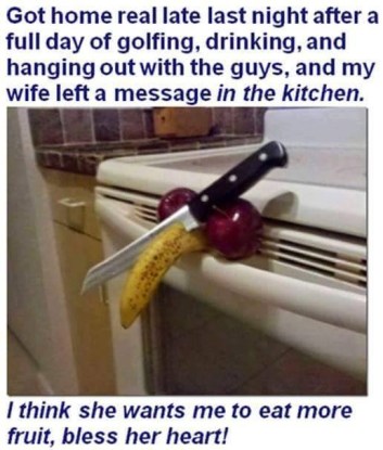 “Honey, I’ve been thinking, now that we are married I think it’s time you quit golfing. Maybe you should sell your golf clubs.”