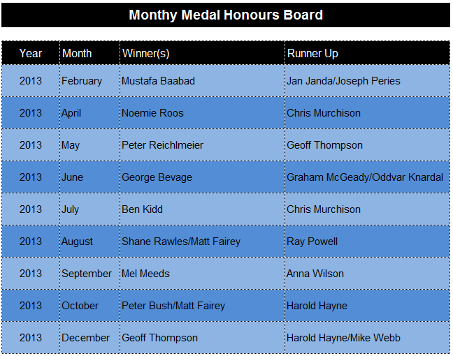 Monthly Medal Honours