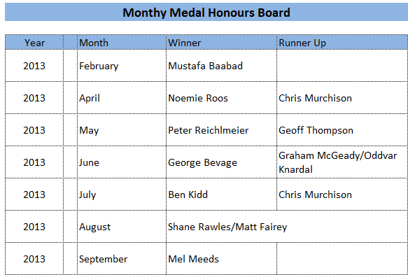 Monthly Medal Winners