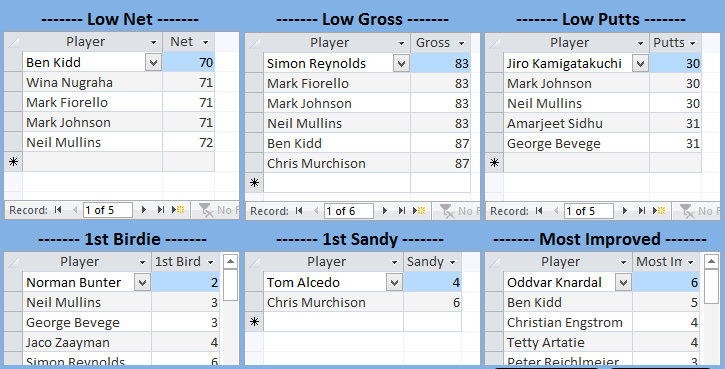 Certainly Ken Runyon’s story of his road to redemption from an embarrassing 98 on the Saturday to an impressive second day 86 won him Low Gross and most improved overall is worth relating. Ken’s fascination with that chocolate ice cream also earned him a new nickname, Mr Whippy.