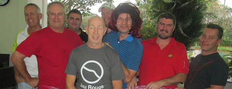 The majority of the group played both Saturday and Sunday and overnighted in the very quaint but comfortable Lido Lakes Resort. Of course for a Tee Set group to overnight anywhere means a rollicking party will materialize, and that’s exactly what happened. A B-B-Q dinner put on by the hotel, sausage and cheeses from Joe and Keith, pate from Santi, Malibu rum and Chivas Scotch whisky from James, and 12 bottles of Wolf Blass red from the Tee Set stash.