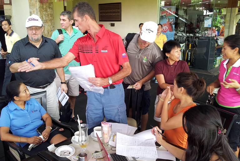 With a shotgun start promised, all should at least finish before dark. Relatively reasonable green fees etc for a course of this quality of 800,000 roops, including shared cart, are somewhat offset by beers at 50,000 a shot.