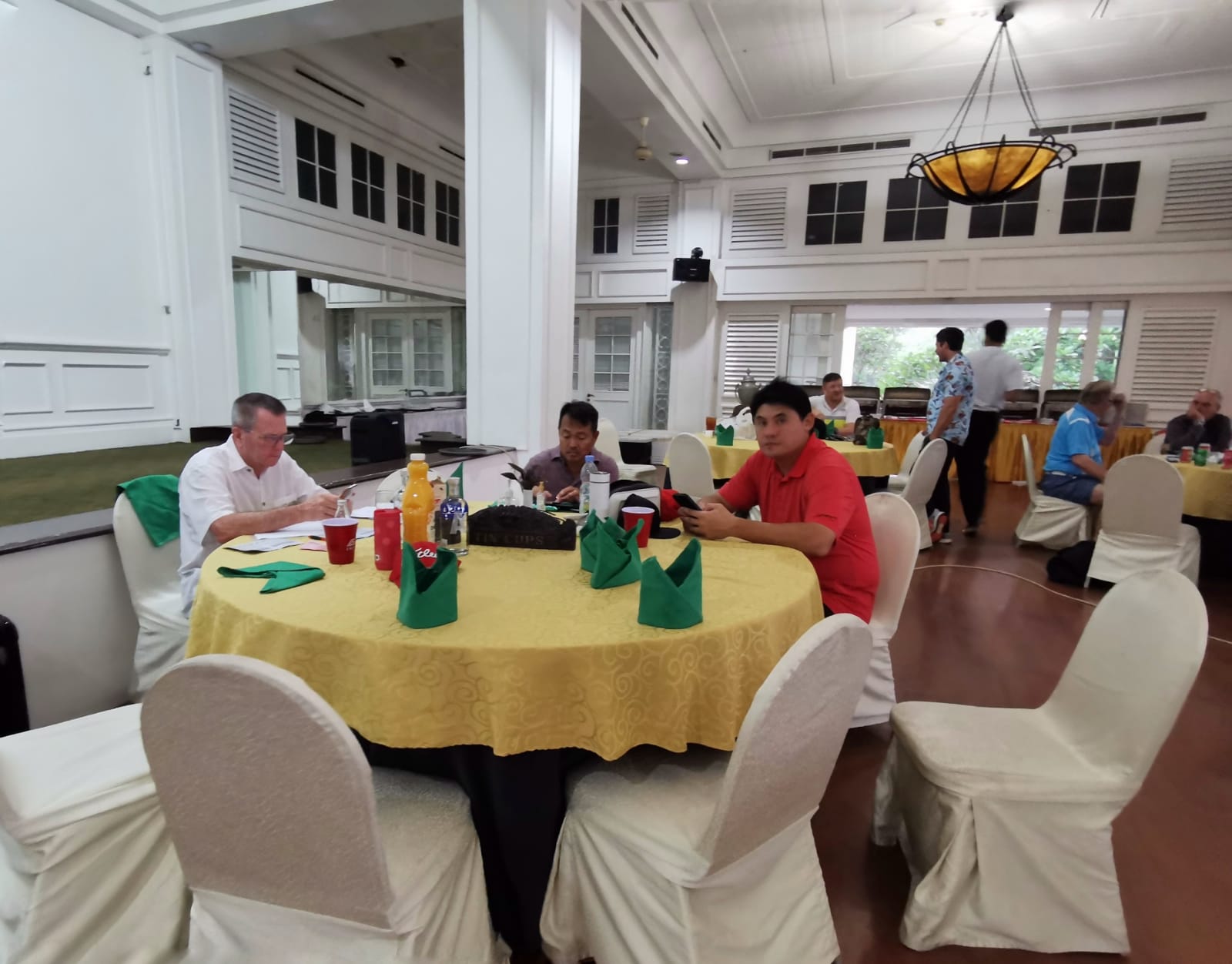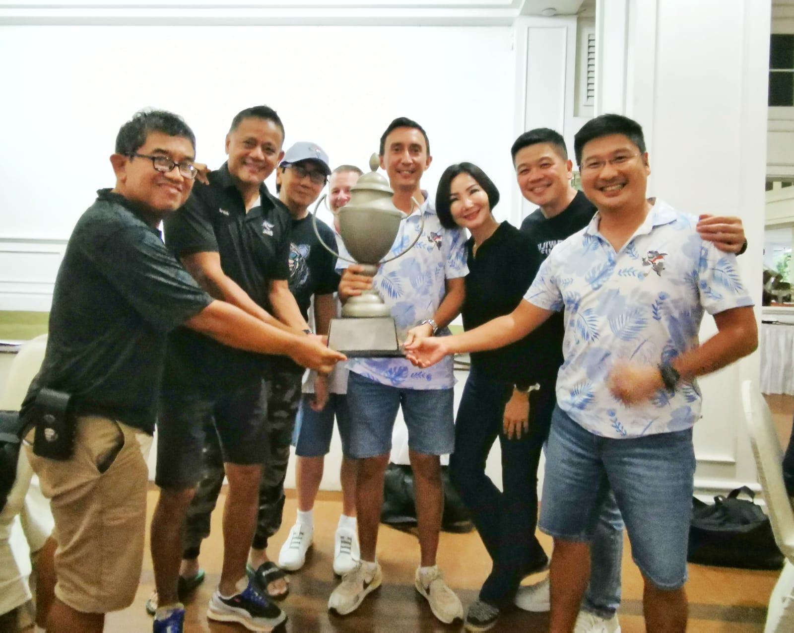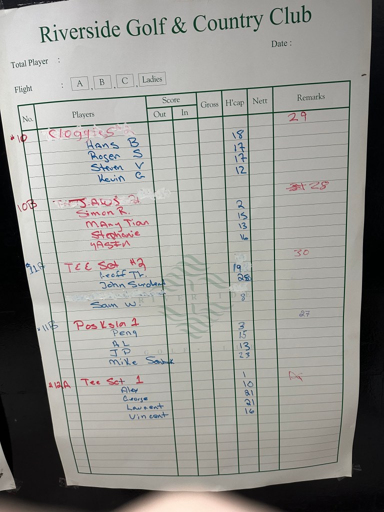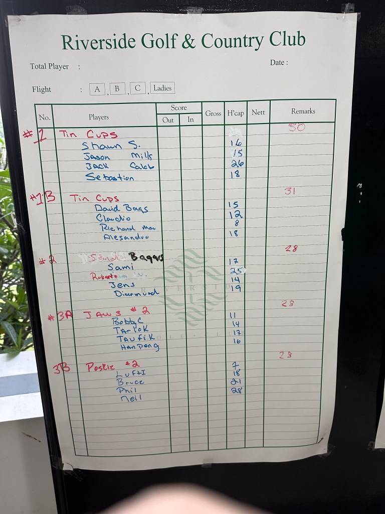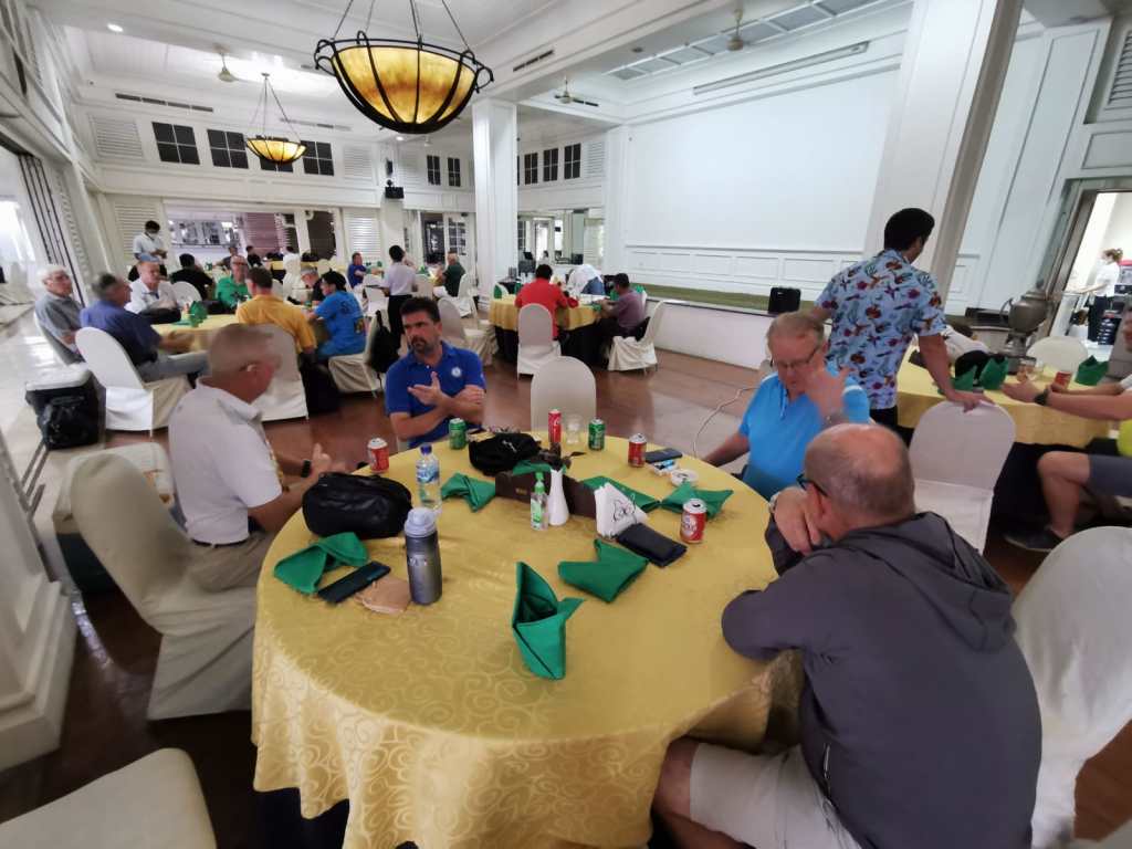 A few weary heads arrived after watching late games of the World Cup. The wind was blowing at speeds seldom seen in Jakarta. This could play havoc amongst TeeSet golfers who rarely see more than a light breeze. Numbers were large for the last Kojo Monthly Medal for 2022. Also up for grabs were shield points. The TeeSet group were divided off tee boxes ona and two. The President started off in excellent form with oohs of amazement from fellow TeeSetters assembled at tee box 10. It didn’t last. Some good rounds were posted in the gusty conditions and it was good to see most TeeSetters hanging around for the social side of after golf beers and margaritas .
