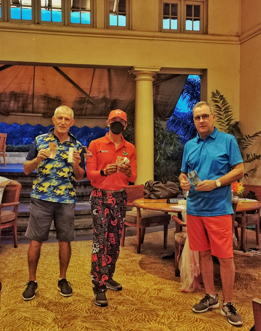 With some courses around Jakarta starting to open, but restrictions still in place, we have a mix of overseas and Indonesian rounds this week. Thanks to Santi again proving to be the Lady of the Manor with 34 points, Andrew playing and spraying at his home Wembley course in West Australia for 22 points, Neil still in Miami on a mission to beat Ian Butcher – cut to 15 this week – and managing to still get 37 points. Not pictured here are the guys at Bali National – Indar (31), Willi (26), Murthy (27) and Jeremy (21) – thanks again guys for sending in your scores!!!!