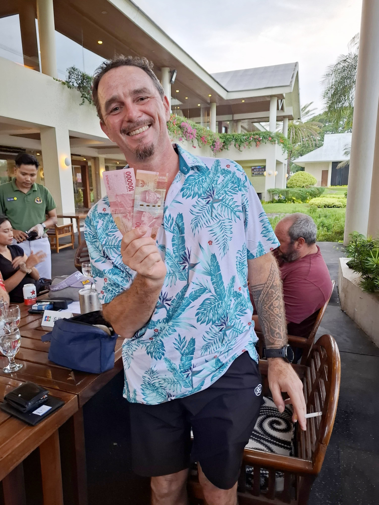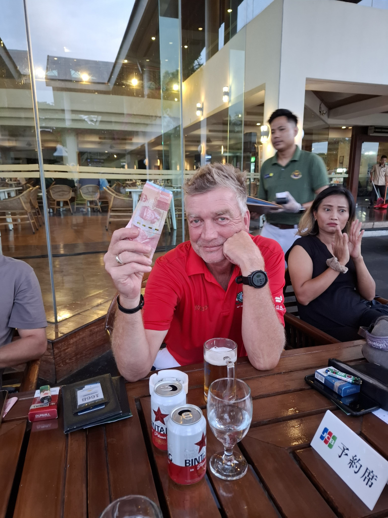 The margin was 16-8 in favour of the DOGS but this margin belies how close the match actually was. Our number one pair squared their game against a DOGS twosome who finished in the top 4 for the DOGS Rancamaya series. Well done Jaakko & Sami, the fearless Finns. Tom, Cucu, Viboon, Steve Bagus & Trisna all played very close matches to come oh so close to a win. A battling half went to Dean “New Knee” Merrilees and Sari. A great battle by Roberto & Alessandro saw them emerge victorious over a highly fancied DOGS pairing. Patrick and Craig had a saw-saw battle against Shinta & Jens but held them off for a 3&2 win. Dougie & Michael made light work of their match against the ladies with a 5&4 win. Paul & Bill individually had a good day on the track but didn’t manage to spread it across the course. A little too often they both won the same hole, if you know what I mean. Indar & Bobby well what can I say, best I say nothing. A great day overall and a great night with live music and dancing late into the night, a well hosted event.
