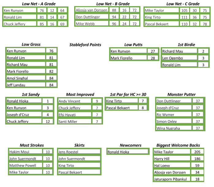 So far we have 94 sign-ups and a maybe so there are a few spots left for those who are undecided. Please sign up here as soon as possible if you wish to join – note whilst we can manage a few who show up on the day, we cannot be prepared with goodie bags etc.. for you if we do know by Thursday night. The all in fee for the day is Rp1.2j per player with members of Matoa being charged Rp700k.