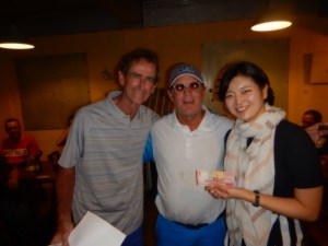 With our Low Net winners delayed in the showers, we had to capture them later on with Lorenzo Marengo (Low B net 73) and Mike Harling (Low C net 72) reappearing in time for the presentations. Low Net A after a net 72 Richard Mau had already departed due to another engagement.