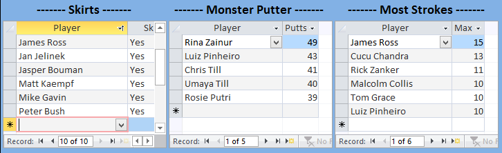 The Former President of Almost Everything snuck back in again for a skills prize to mask his overall performances with a birdie on the first while Leona featured yet again with First Par over 30 Handicap which more than covered her Most Strokes fine.