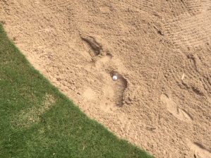 Here is a picture from a recent Tee Set game which is sadly a situation many of us face week in and week out as attention to repairing bunkers and divots is not top of mind for the many players ahead of us (since they expect their caddies to do it and do not check) nor most of the caddies at the end of the week-end when their energy levels can be low and policing by course management is unfortunately negligible at some courses we play.