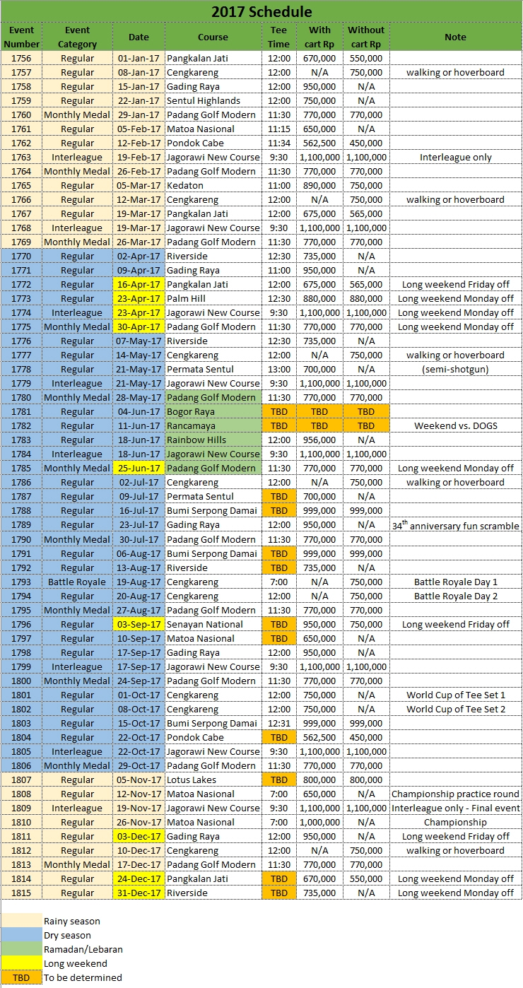Tee Set 2017 Schedule [2017-04-11]